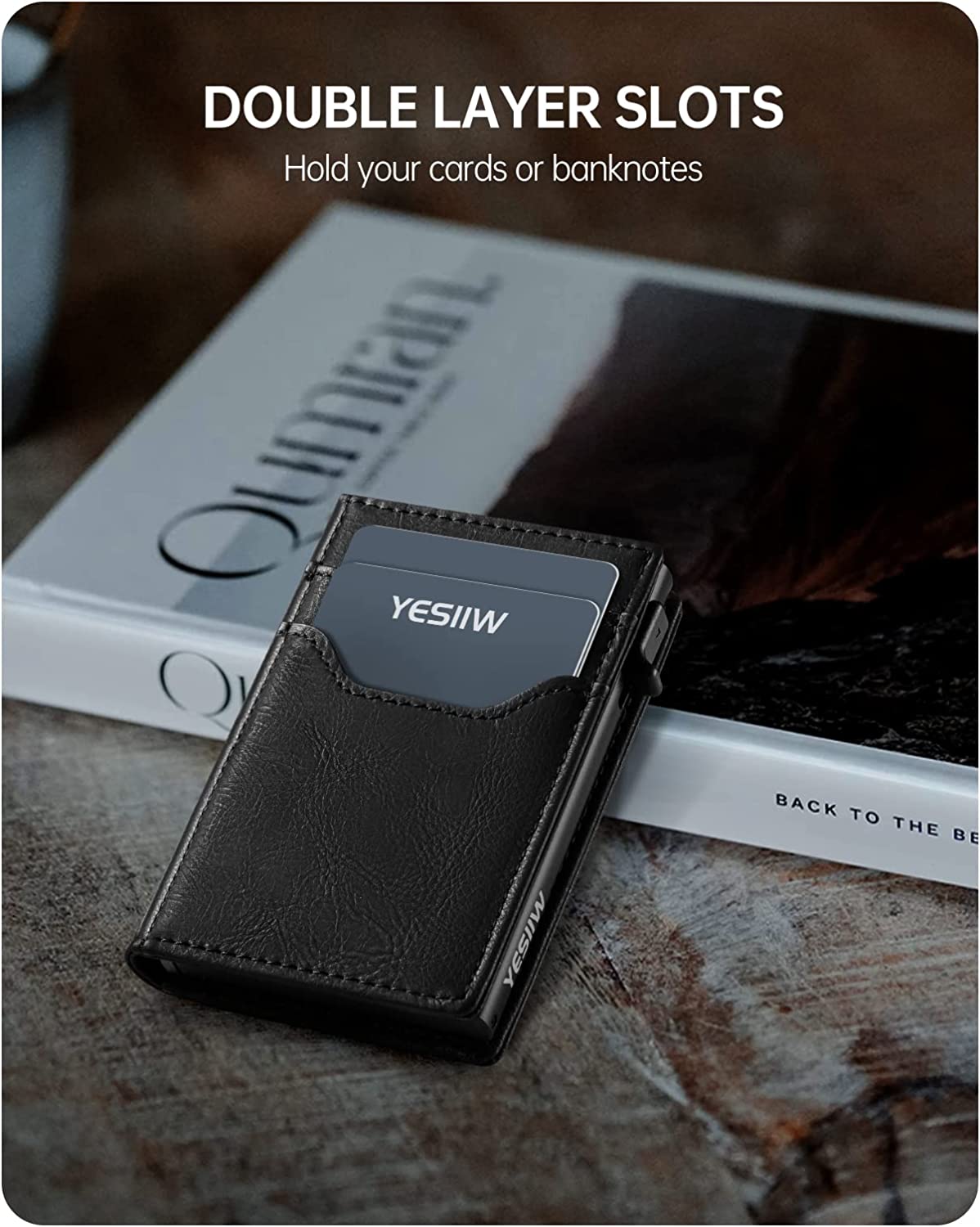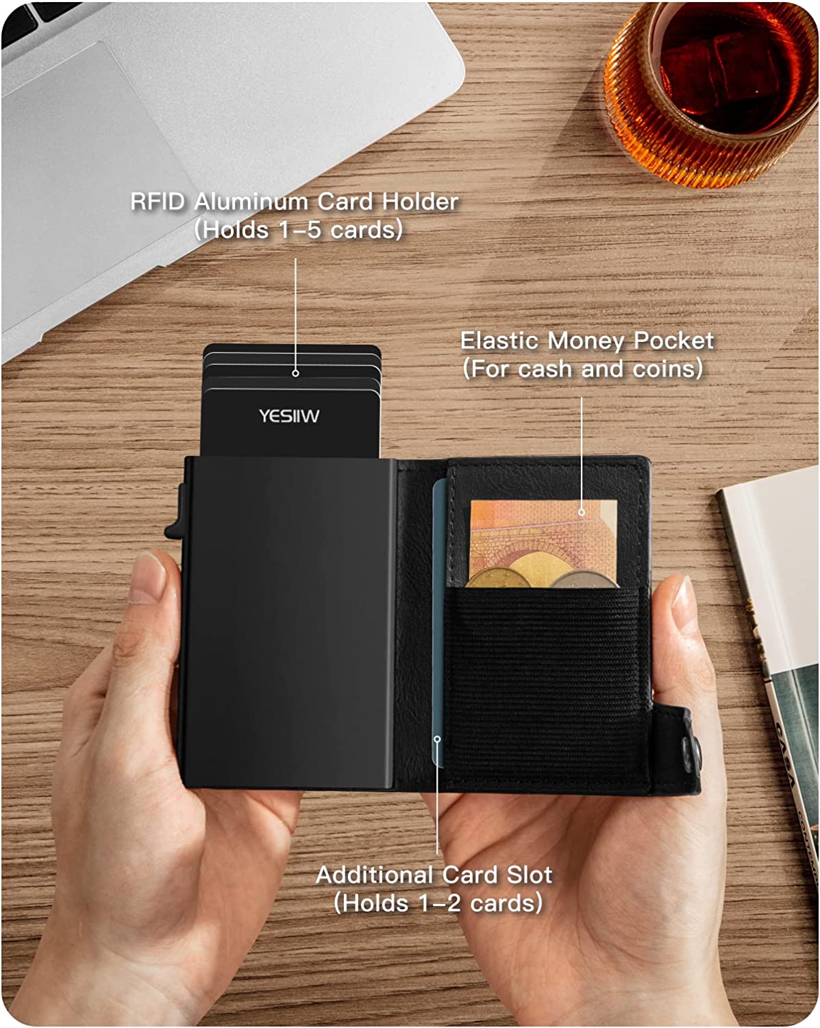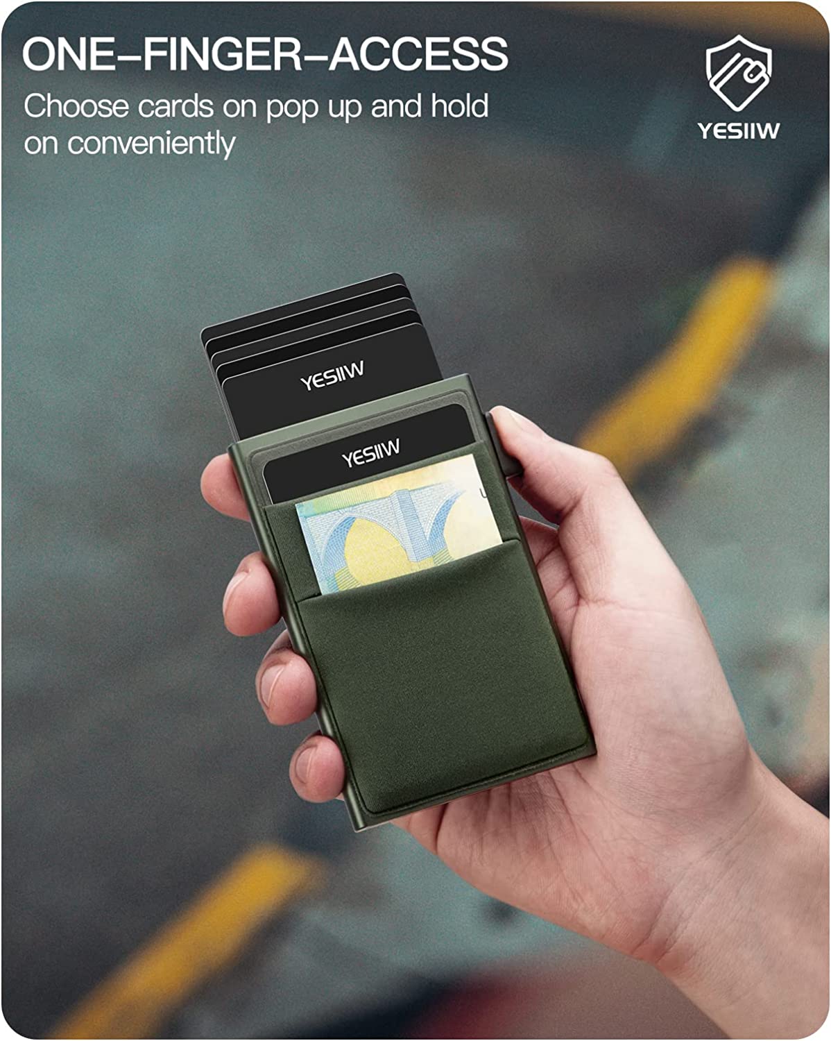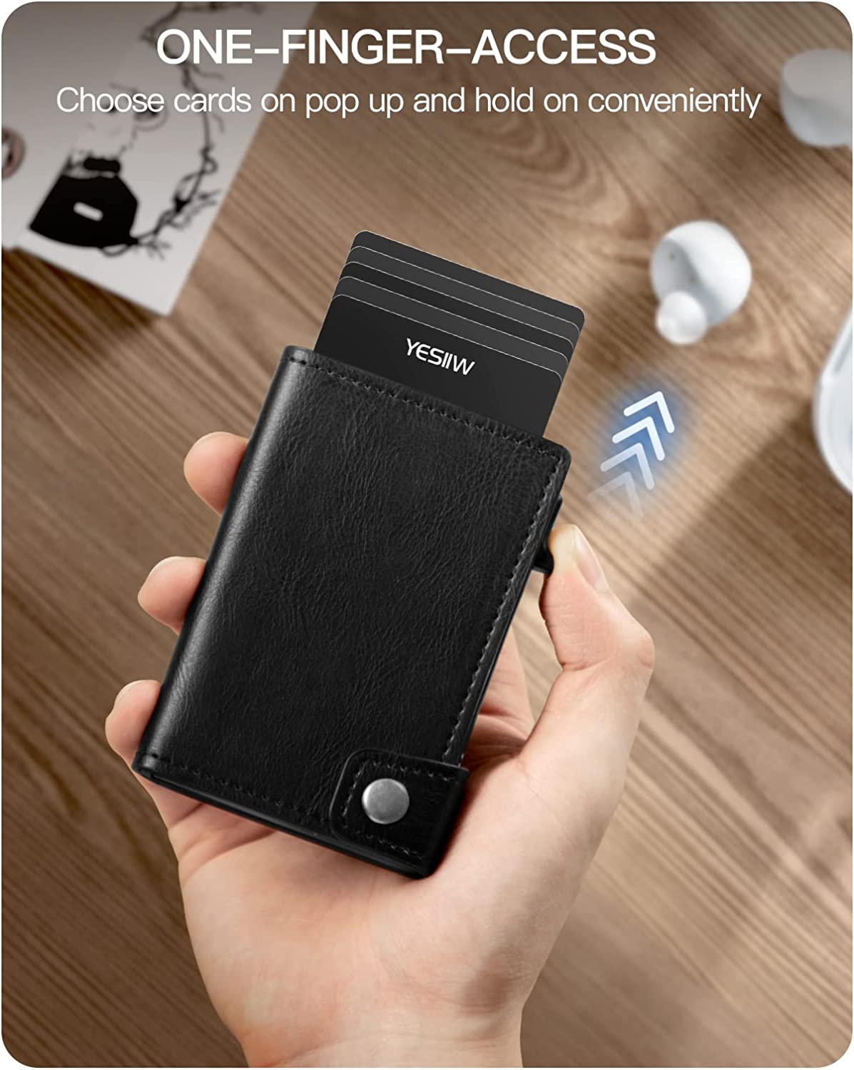 YESIIW Slim Card Holder Wallet - Pop up Wallet for Men with ID Window and RFID Protection Up to 11 Cards Card Case