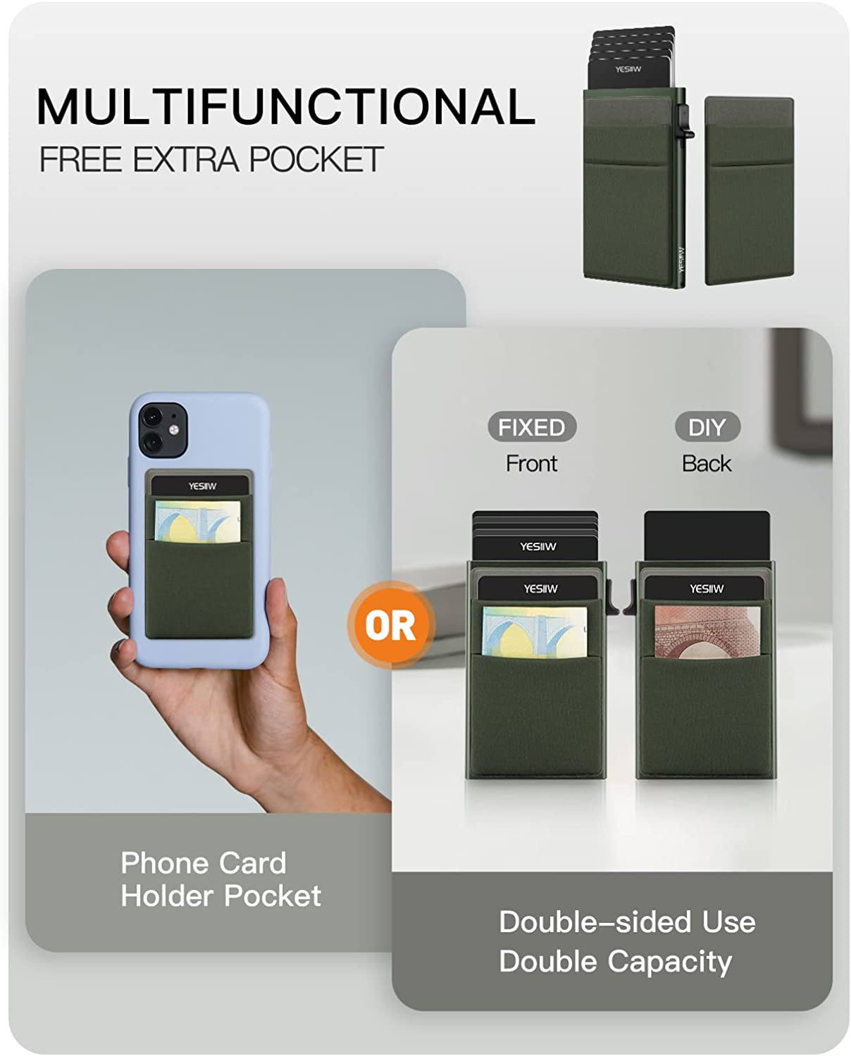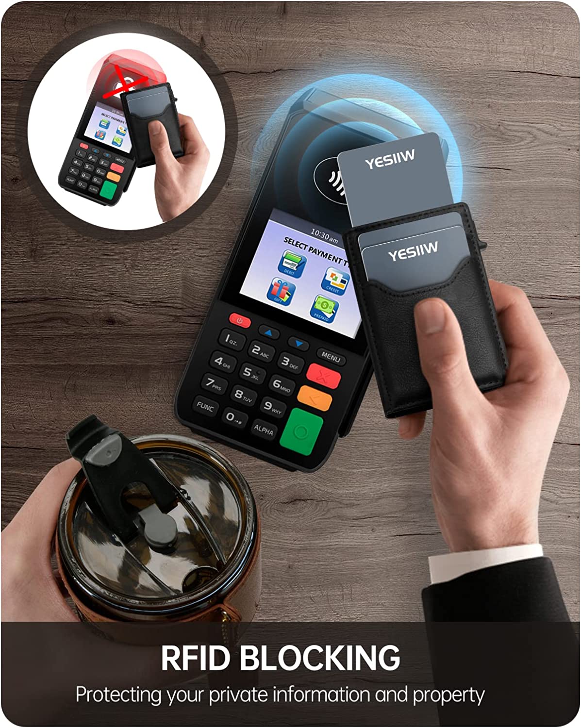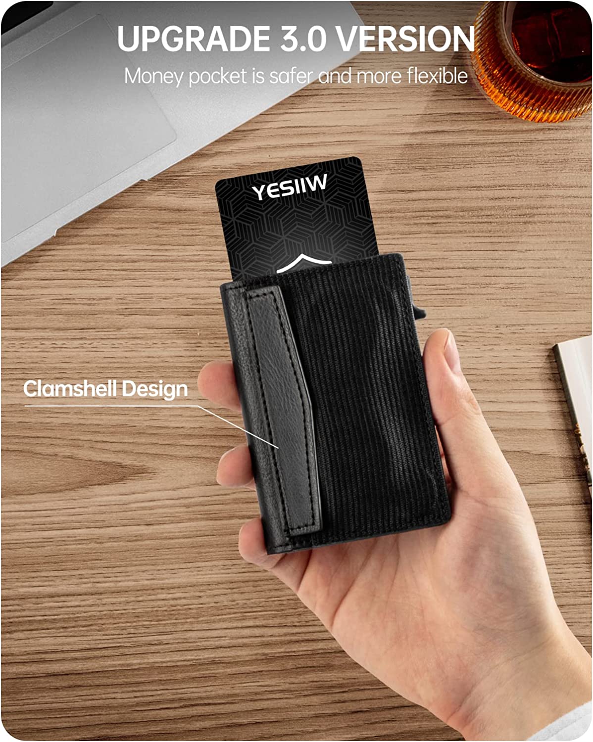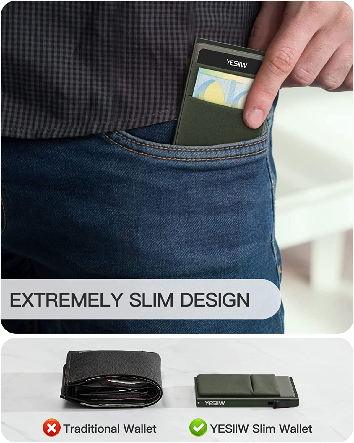 YESIIW Slim Card Holder Wallet - Pop up Wallet for Men with ID Window and RFID Protection Up to 11 Cards Card Case