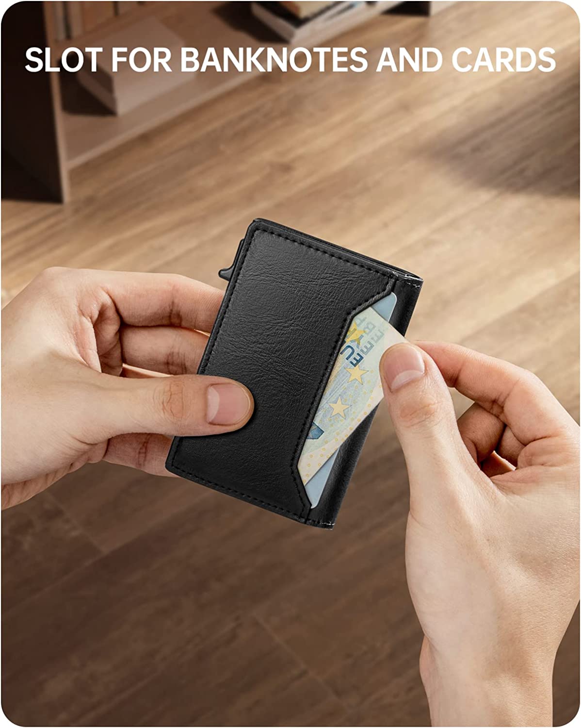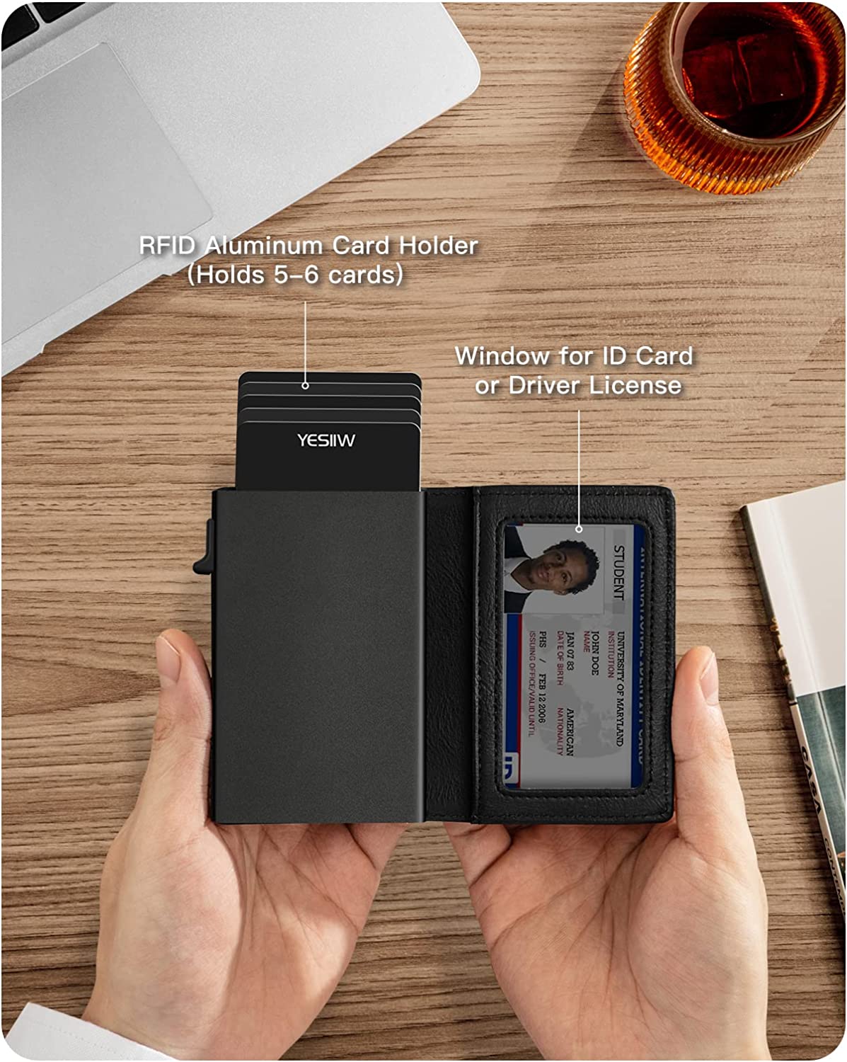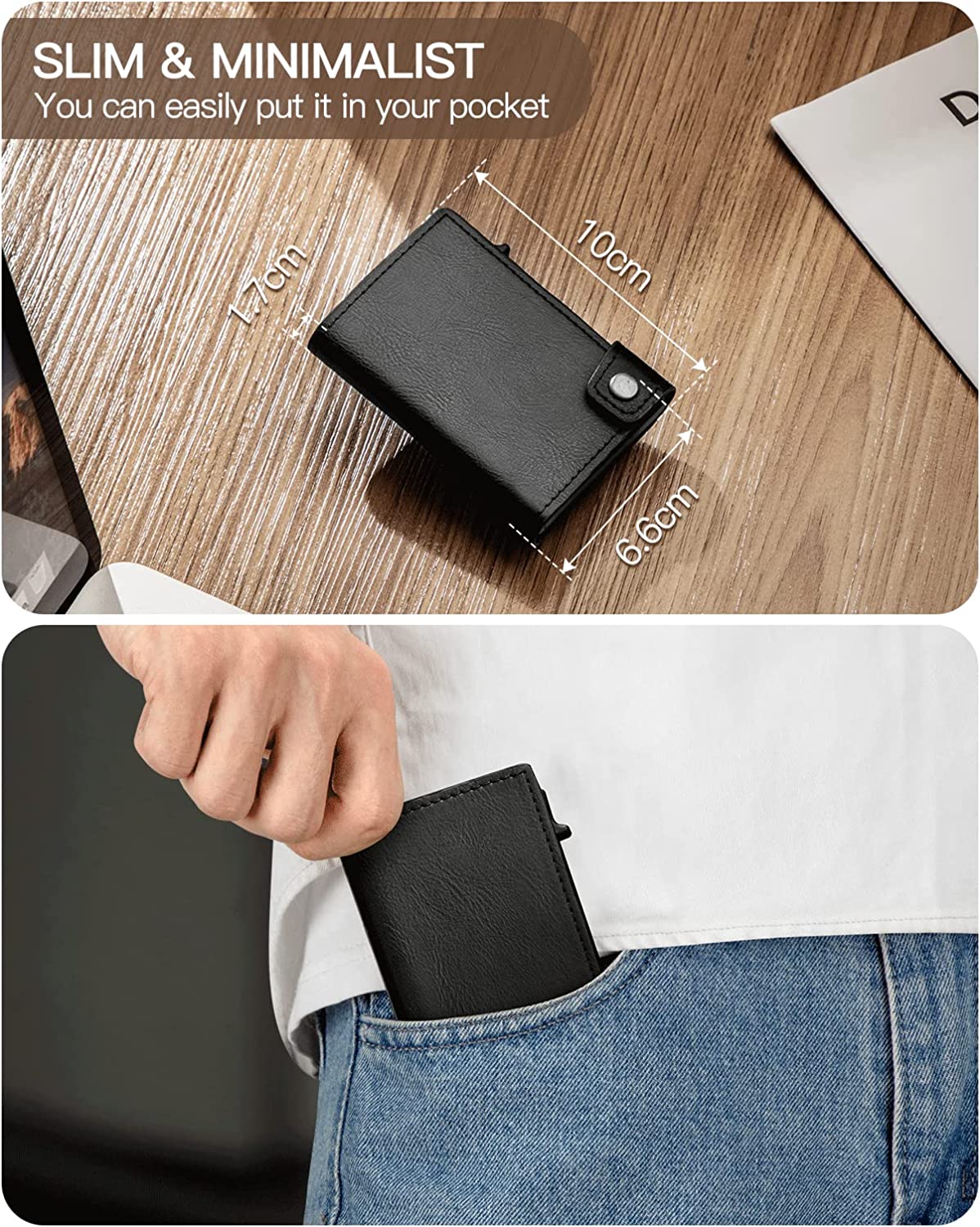 • ✅ QUICK ACCESS & LARGE CAPACITY - This slim card holder wallet is made of thin, lightweight, minimalist aircraft-grade aluminum and 6061 synthetic leather. Holds 5 cards in an aluminum card case, 6 cards & bills available for 4 extra slots, including two front slots, one inner ID window and one back slot, the actual capacity depends on the card thickness.