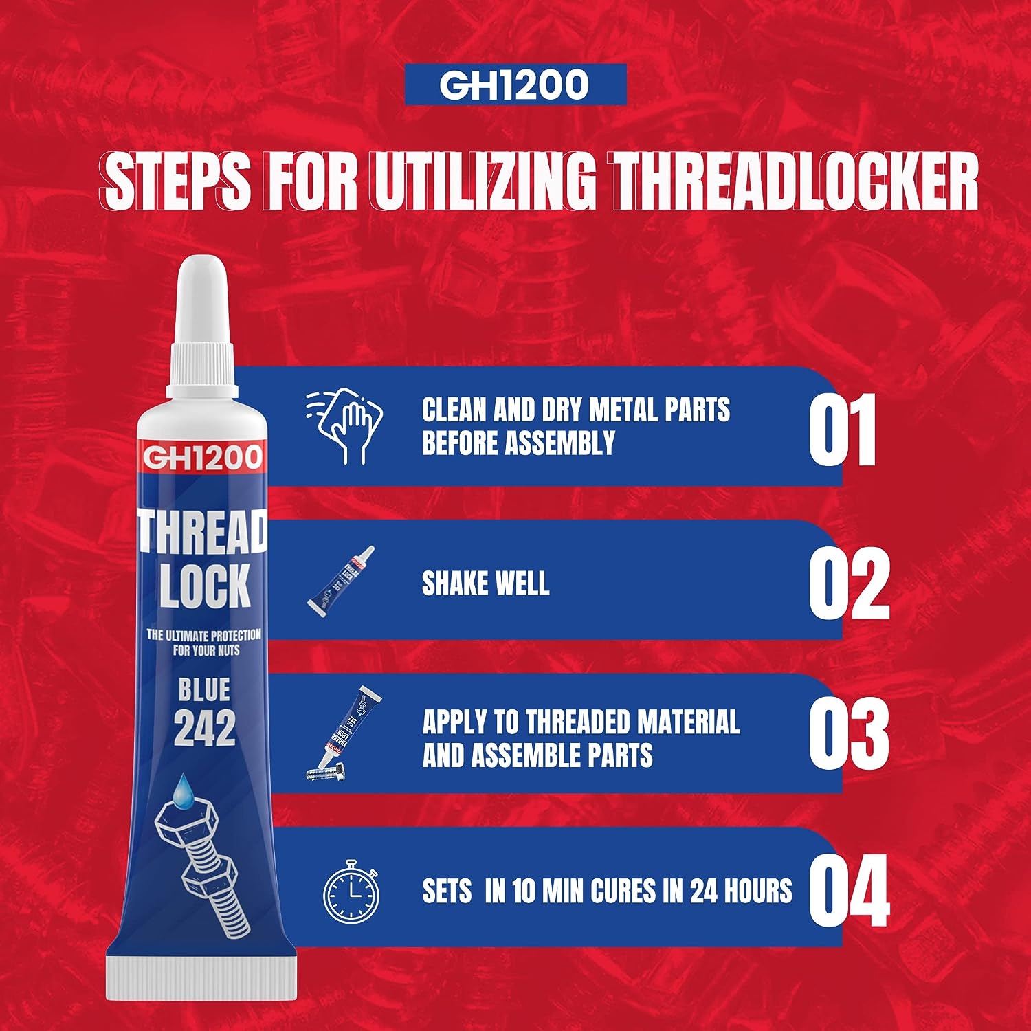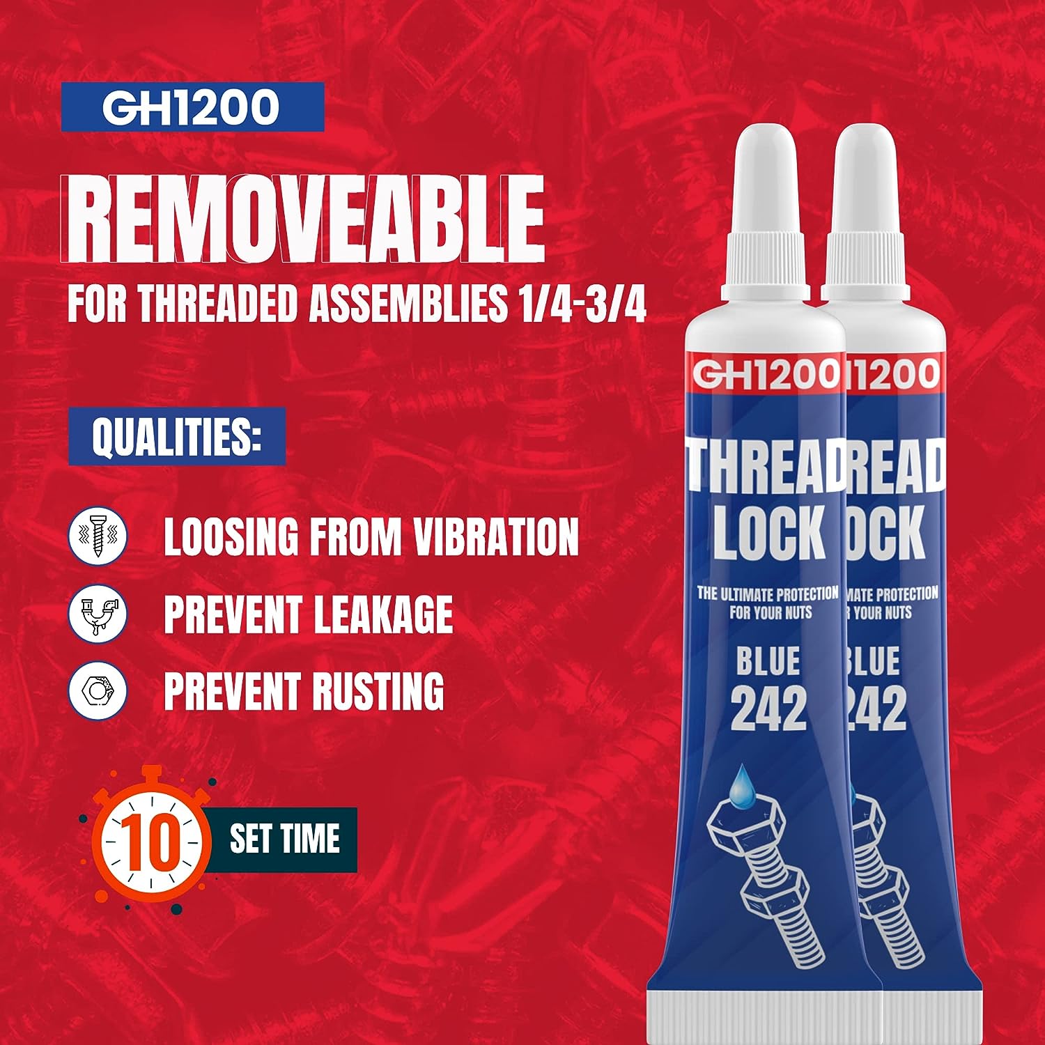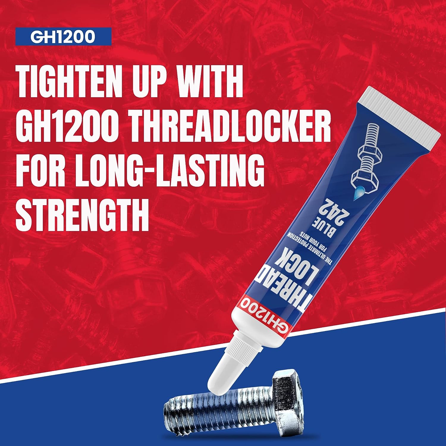 Got a stubborn nut that won't stay? Have a drive shaft bolt that never stays in place?We've got the perfect solution for you! Our product ensures tight connections on all forms of fasteners, guaranteeing that your projects don't have to be undone because of loose parts. Upgrade your toolkit with GH1200 Threadlocker today and improve the durability and reliability of your projects. Experience ultimate stability and consistency with GH1200 Threadlocker. Its reliable and consistent formula ensures stability against resistance, leakage, corrosion, and loosening. Once applied and cured correctly, our Thread Lock will provide an endless bond between your objects as long as you need to. Great for frequent use as it resists loosening from environmental vibrations and torque forces.