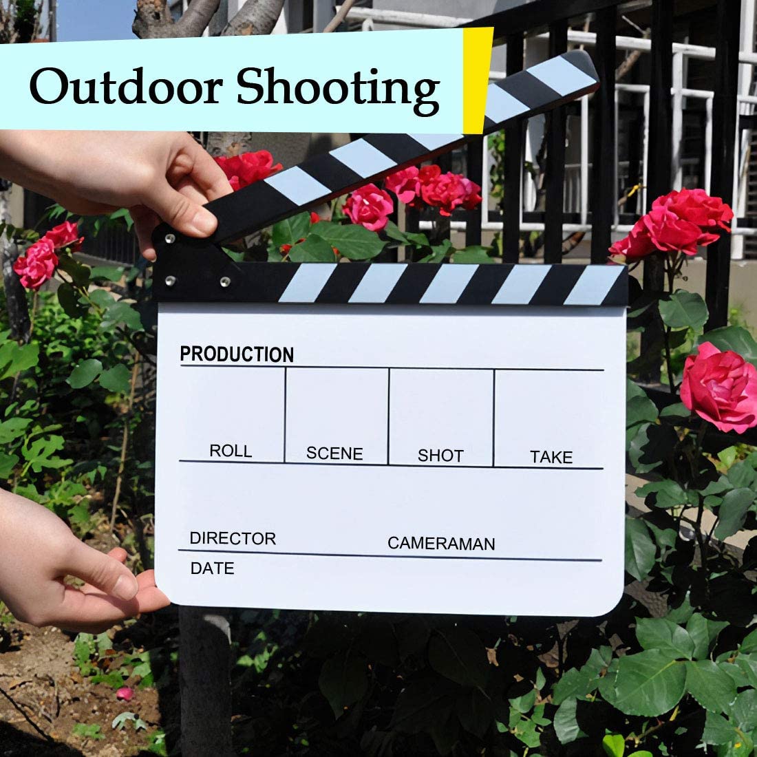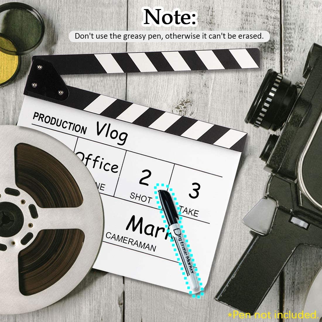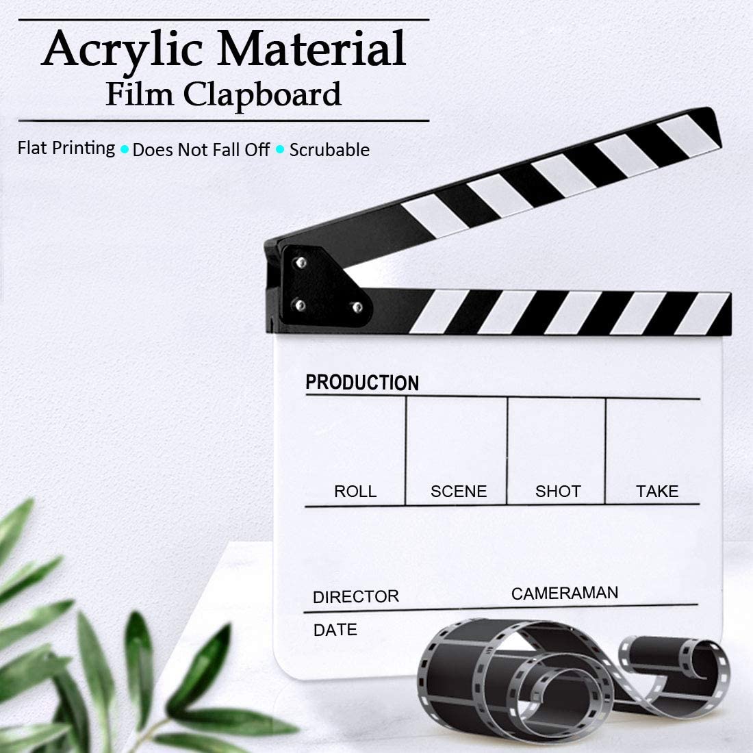 High Quality Film Clapboard Made of Acrylic Plastic for Video Production Director Cut Action Scene Clapper Board Movie Film Clapboard Studio Camera Slate Dry Erase Clapboard with White/Black Magnetic Sticks