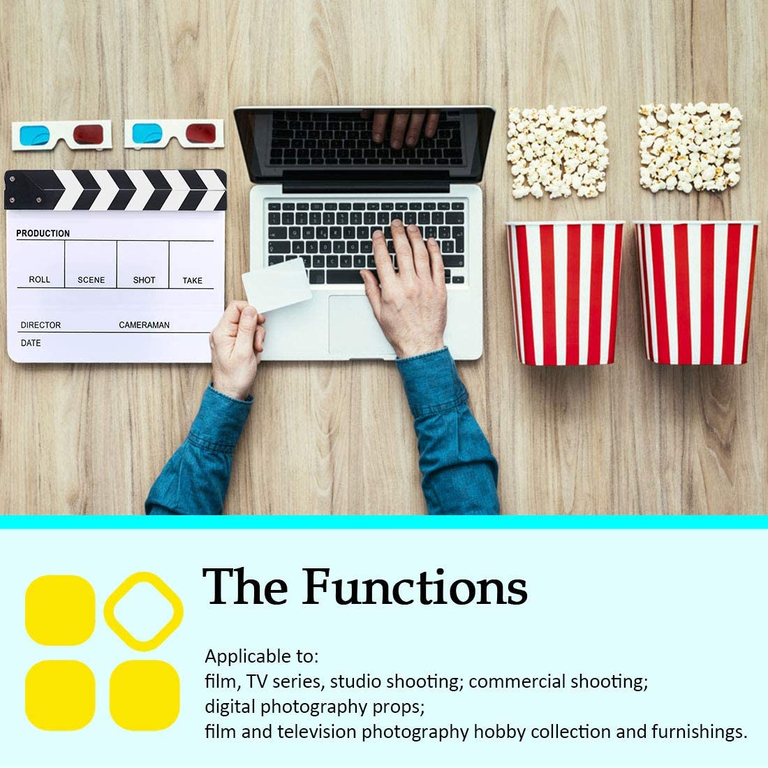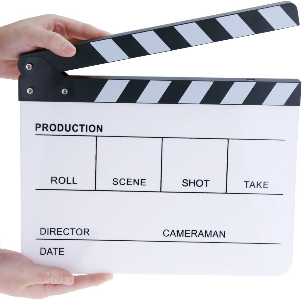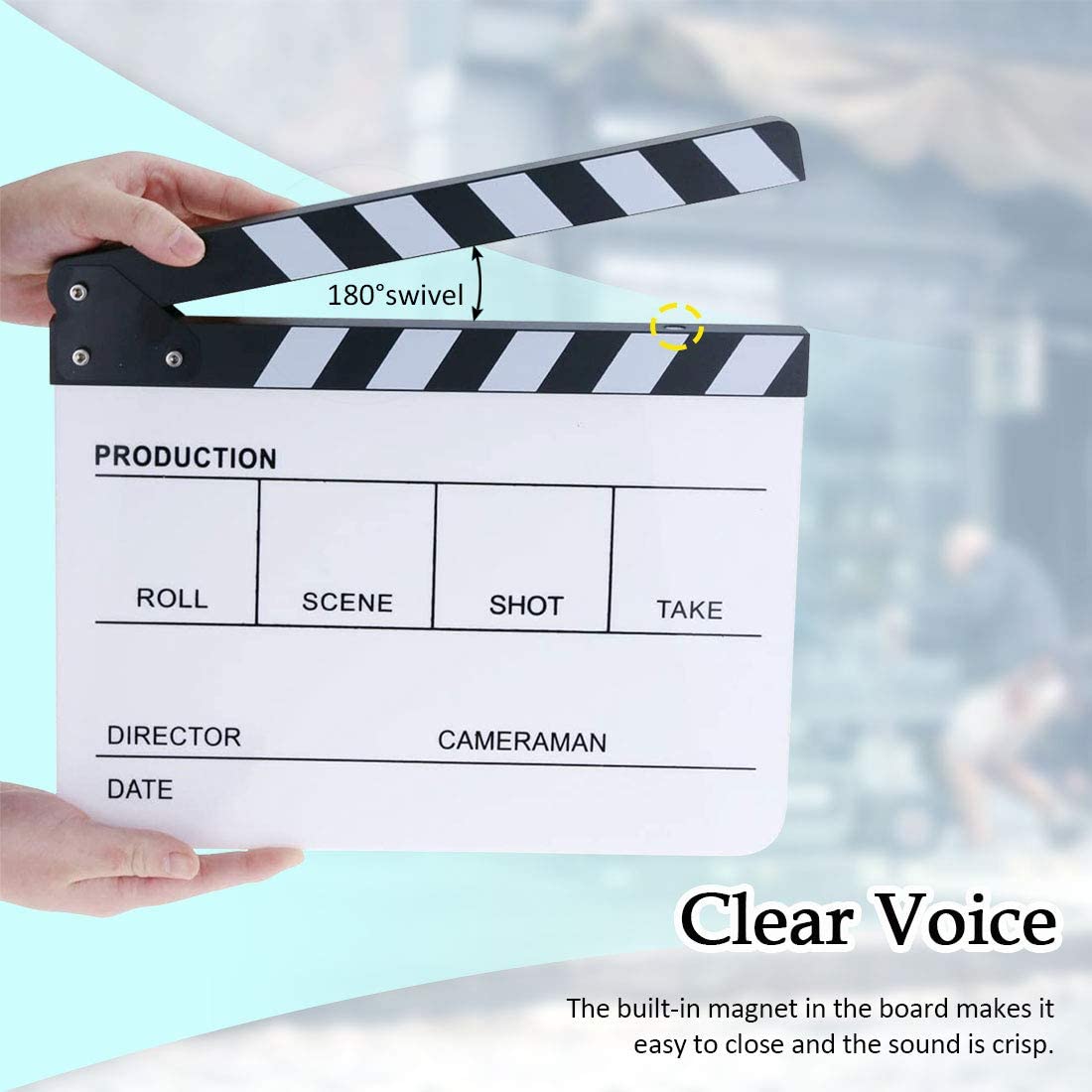 High Quality Film Clapboard Made of Acrylic Plastic for Video Production Director Cut Action Scene Clapper Board Movie Film Clapboard Studio Camera Slate Dry Erase Clapboard with White/Black Magnetic Sticks