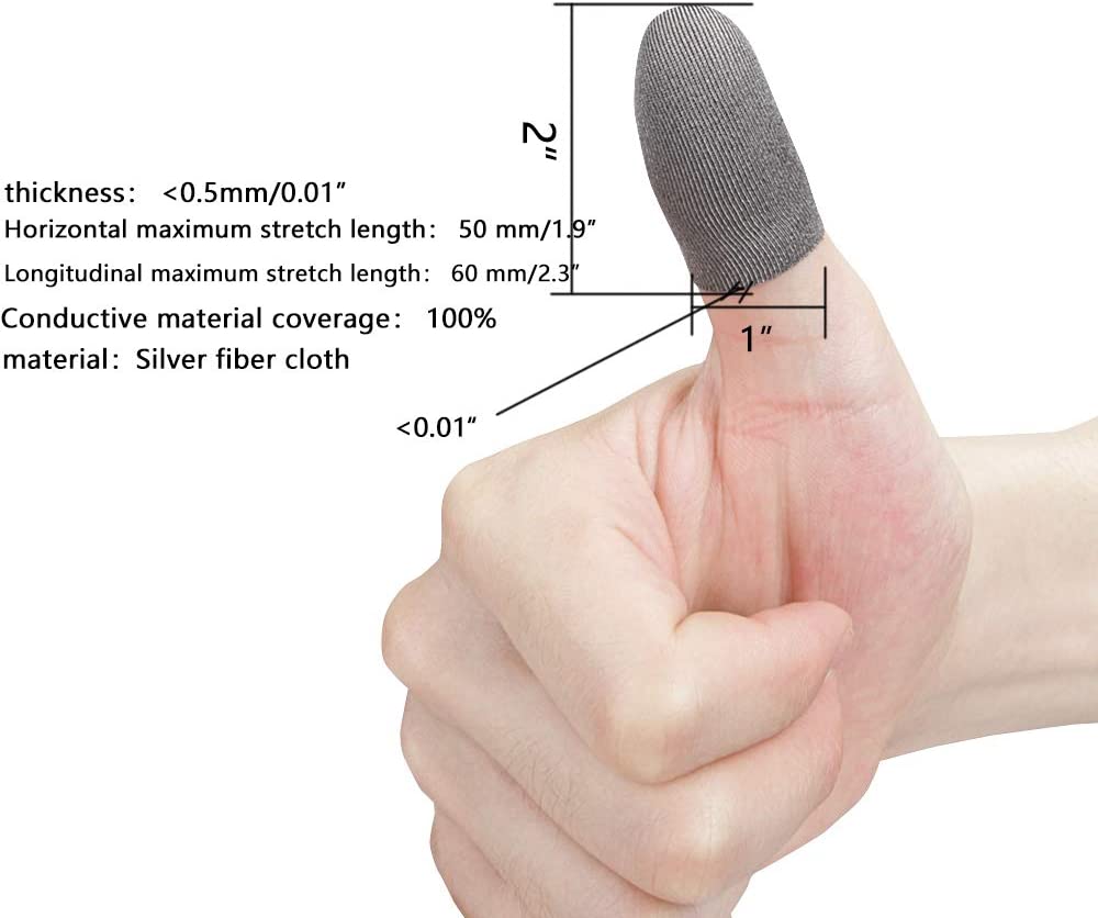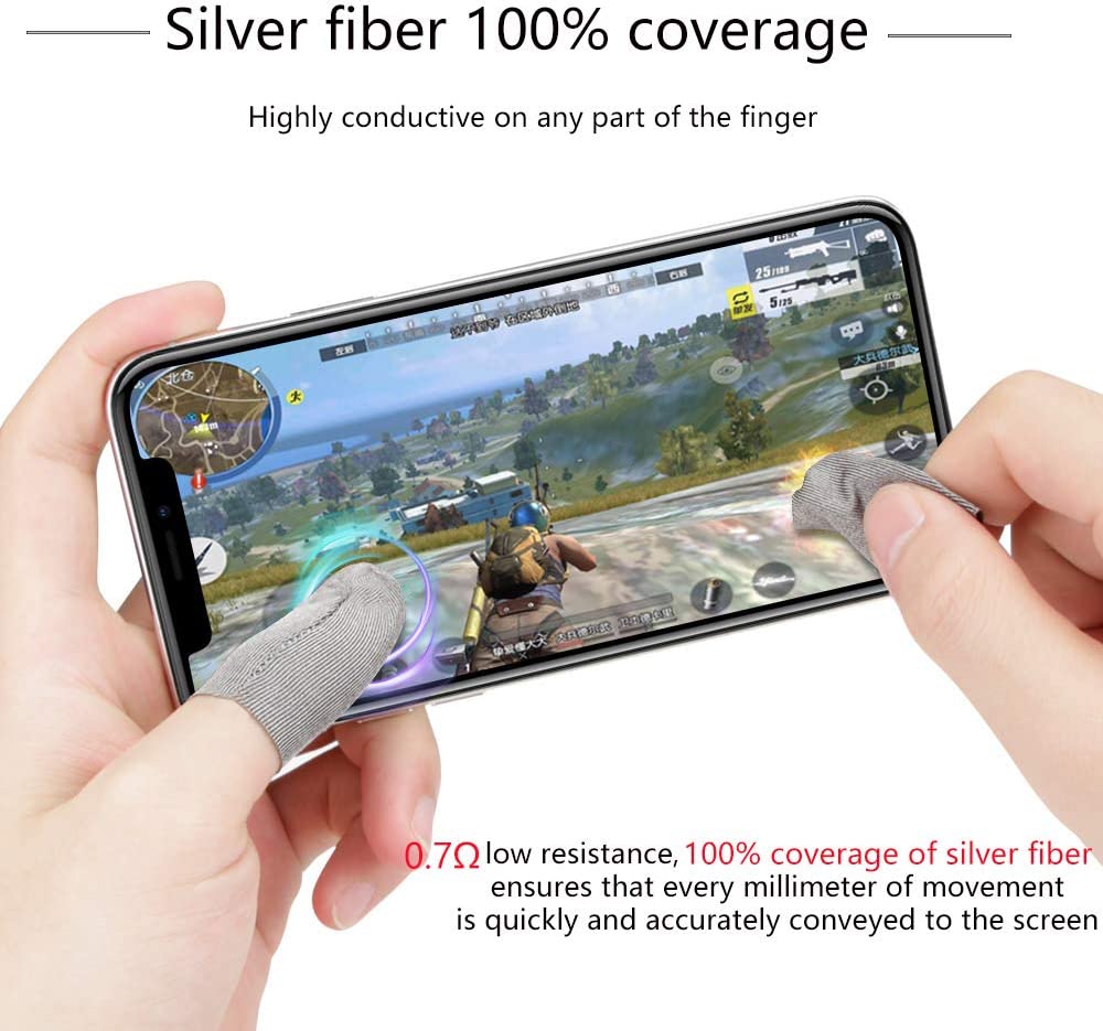 Silver Fiber 100%, 0.01"(0.5mm) Ultra-Thin, PUBG Mobile Finger Sleeve Anti-Sweat Breathable for High-Ranking Players Mobile Game Streamer iPhone/iPad/Android Size: M(6P)