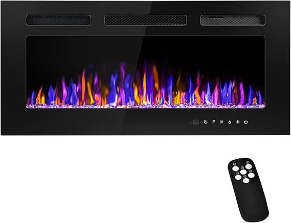 36" Electric Fireplace Wall Mounted and Recessed with Remote Control, 750/1500W Ultra-Thin Wall Fireplace Heater W/Timer Adjustable Flame Color and Brightness, Log Set & Crystal Options