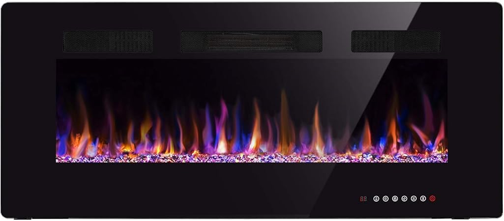 42" Electric Fireplace in-Wall Recessed and Wall Mounted 1500W Fireplace Heater and Linear Fireplace with Timer/Multicolor Flames/Touch Screen/Remote Control (Black)