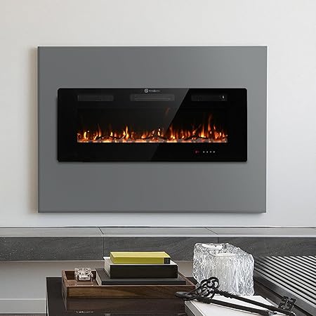 50" Insert Wall Mounted Electric Fireplace, Low-Noise Fireplace Heater Mantel Features a Touch Screen, Timer, Adjustable Flame Color, 700W / 1400W
