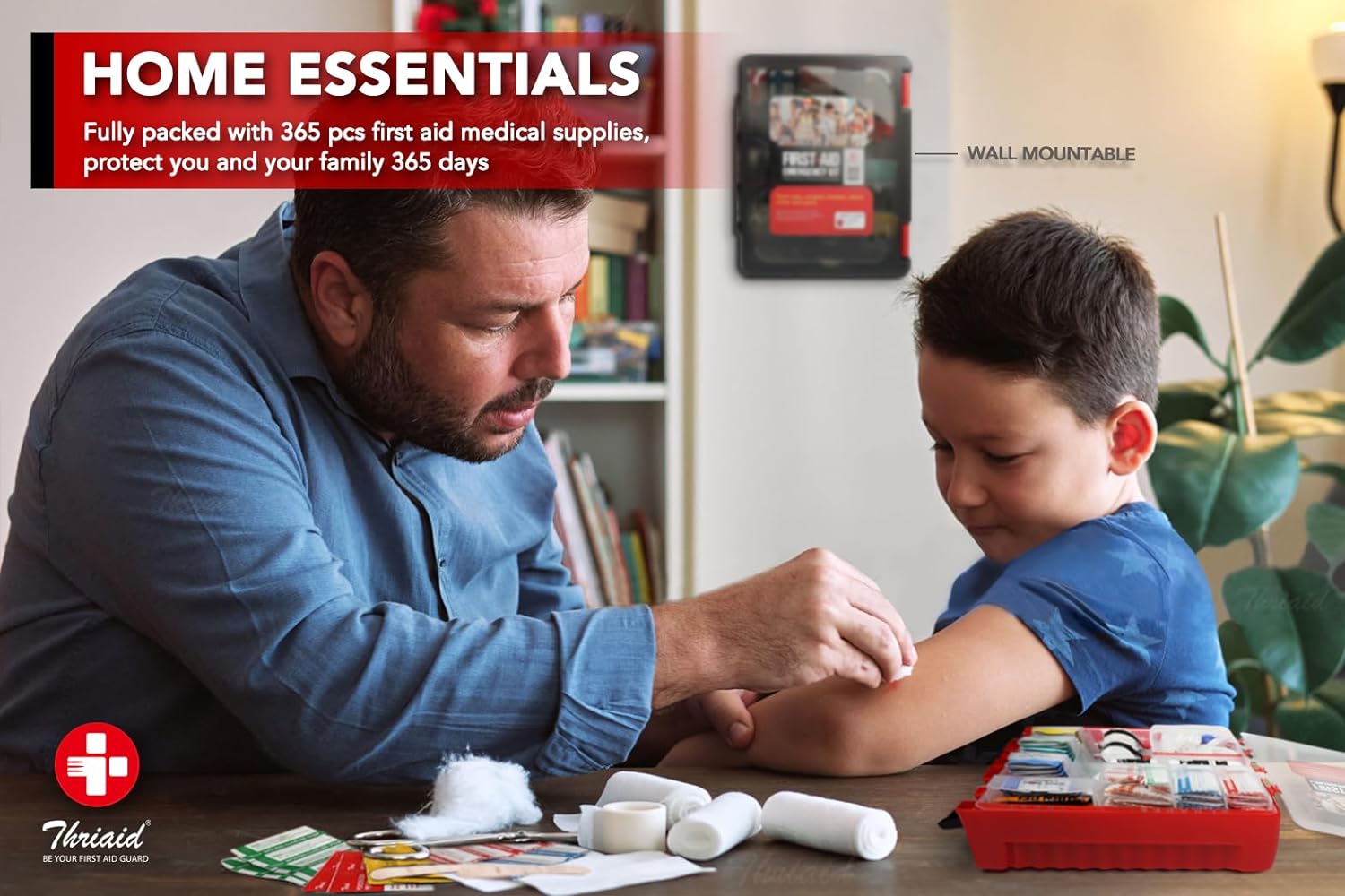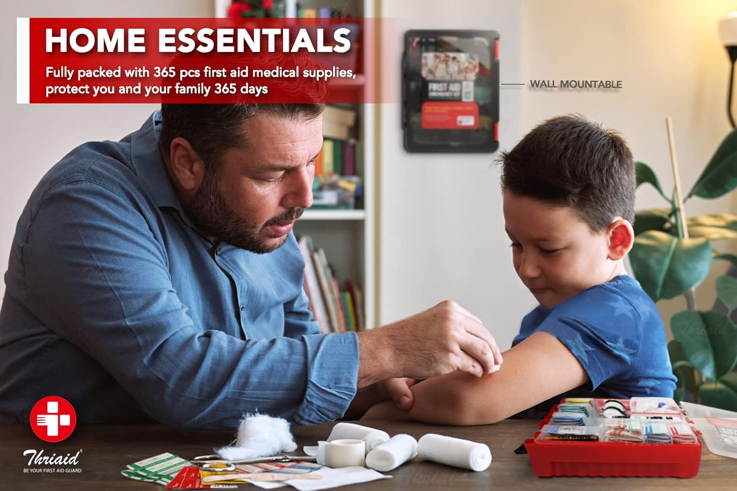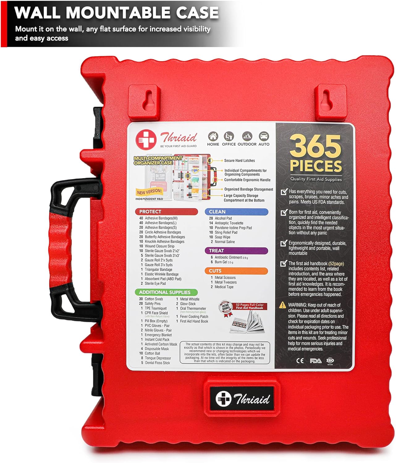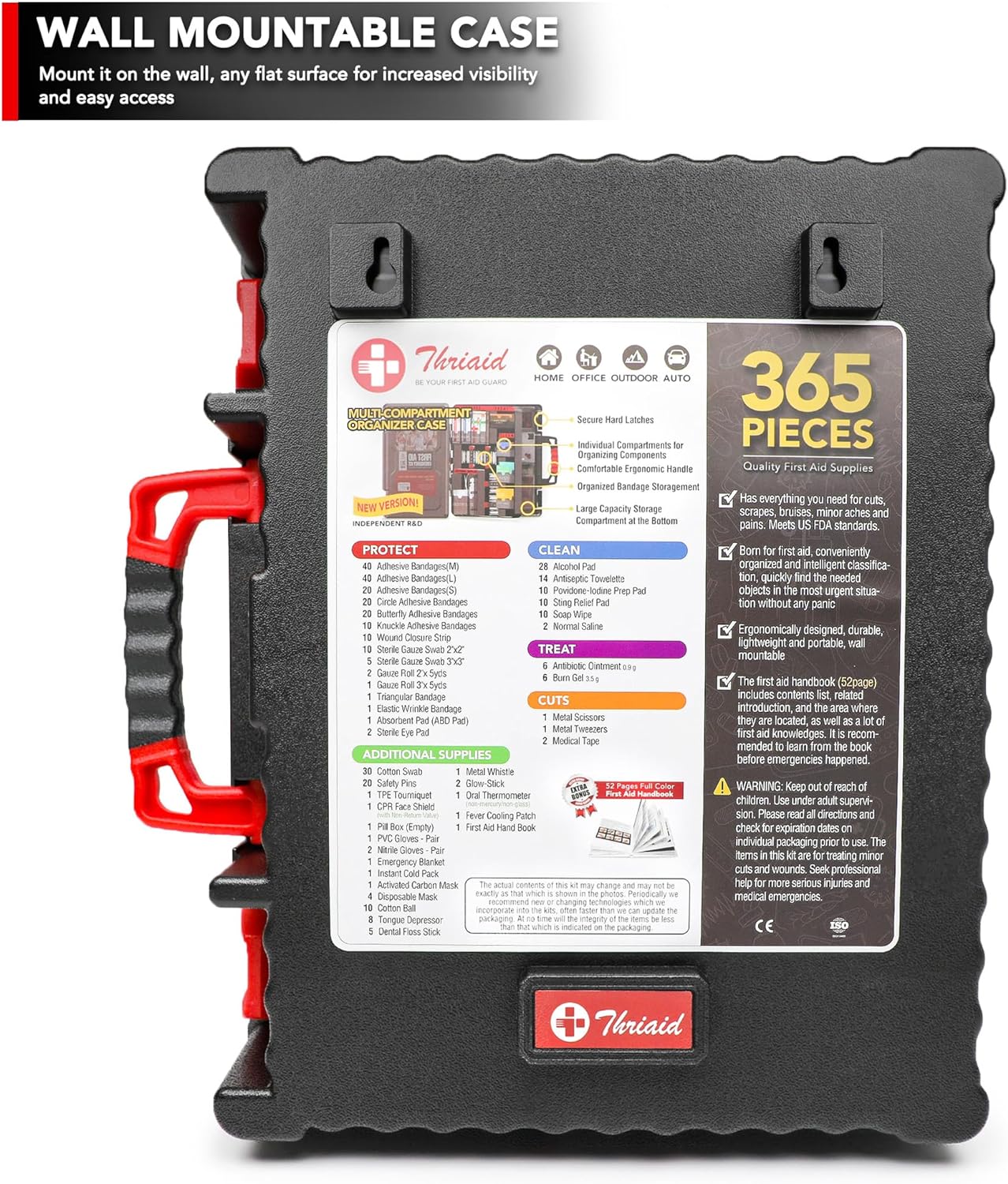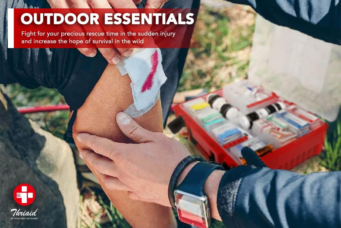 • WALL-MOUNTED & PORTABLE ▶ Compact size case measures (L)11.4" x (W)4" x (H)13.9", 5 lbs weight. Keep THRIAID first aid kit in your closet, medicine cabinet, car, luggage., or mount it on the wall, any flat surface for increased visibility and easy access, while it's easy-to-carry size makes it suitable for outdoor use. Ideal for home, workplace, outdoor, travel, boat, camping, hiking, on-the-go, etc.