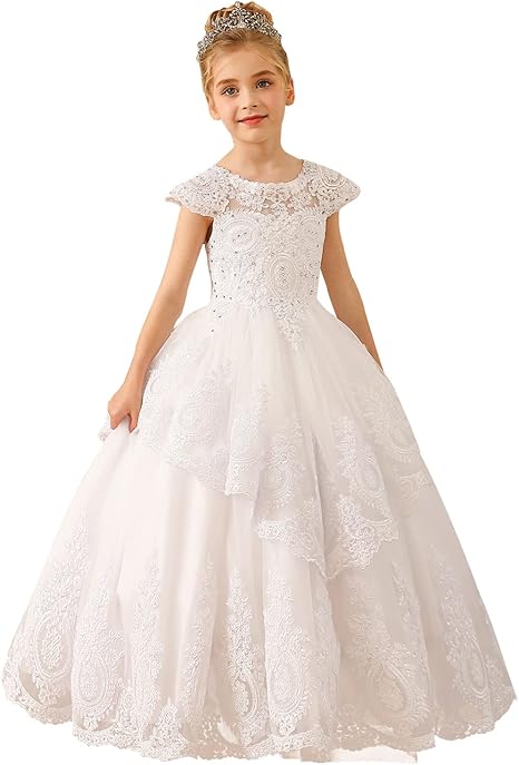 Abaowedding Beaded Lace Appliques Flower Girl Dress First Communion Ball Gown Kids Pageant Prom Dresses