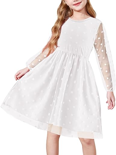 Arshiner Girls Mesh Dress Long Sleeve Tulle Sparkle Glitter Polka Dot Party Holiday Dresses Kids Clothes