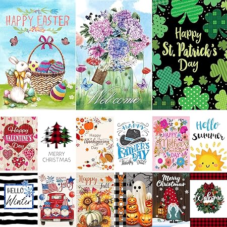 15Pcs Seasonal Garden Flags Set Double Sided 12 x 18 Inch Yard Flags, small garden flags for outside, Christmas Fall Seasonal Outdoor Flags, Holiday Garden Flags for All Seasons