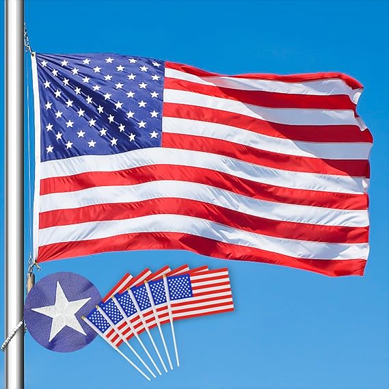 American Flag for Outside 3x5 FT and 6 Pcs Small American Flags, US Flag Heavy Duty Outdoor Made in USA, Fade Resistant USA Flags with Embroidered Stars and Brass Grommets