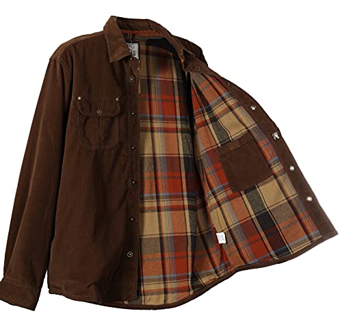 • Snap Button Up Extremely Soft Corduroy Shirt Jacket with Interior Flannel Lining