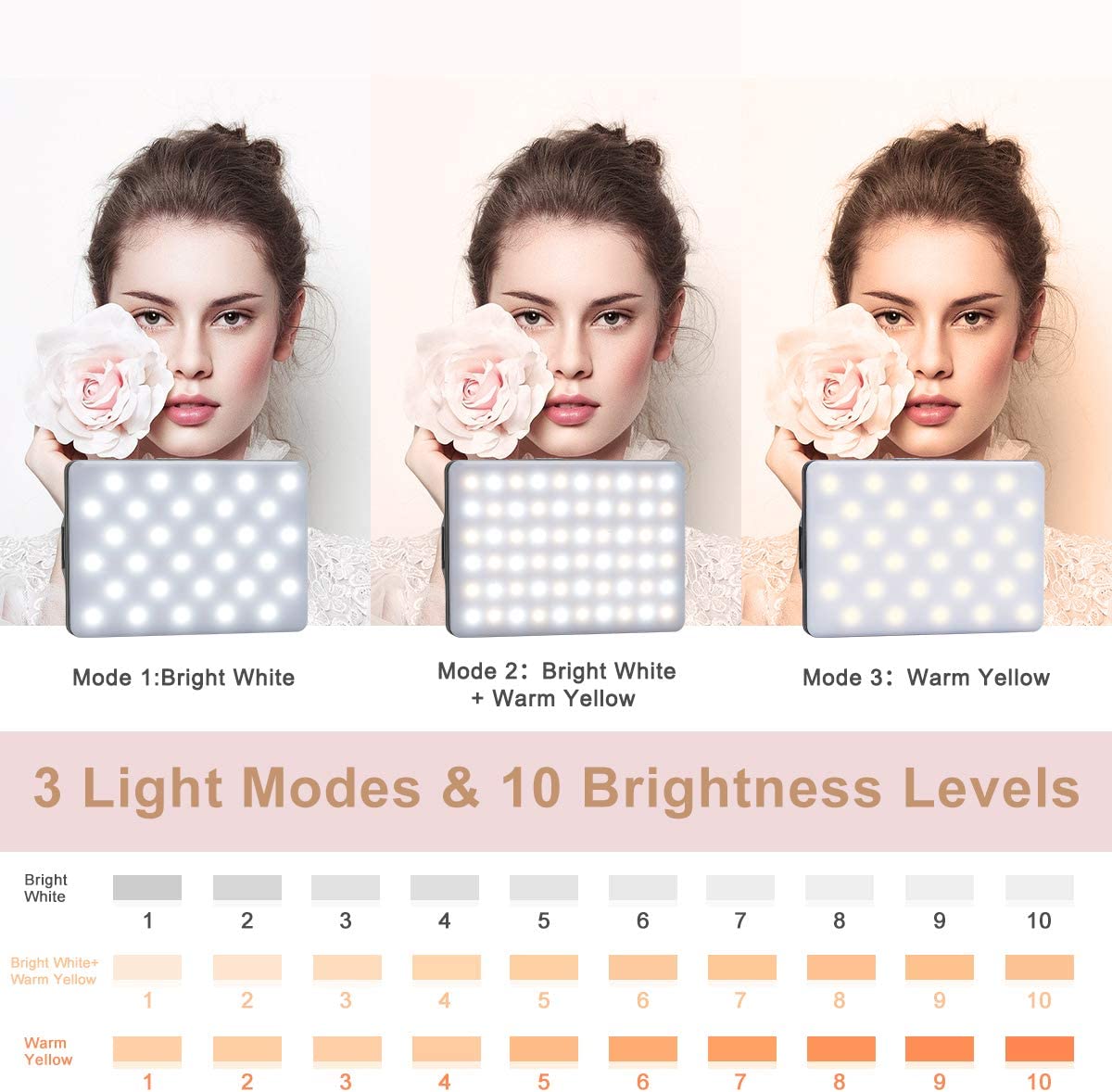 • 3 Light Modes & 10 Brightness Levels: The selfie light has 3 Light Modes(Bright White, Bright White + Warm Yellow, Warm Yellow), which provided to meet your various usage needs, allowing you to be charming in any situation, such as makeup lighting, selfies, video recording, video conference, vlog show, live streaming. Built in 60 LED lighting beads to solve the problem of light, improve the quality of night photography. Enjoy your selfies no matter it is indoor or outdoor, daytime or at night.