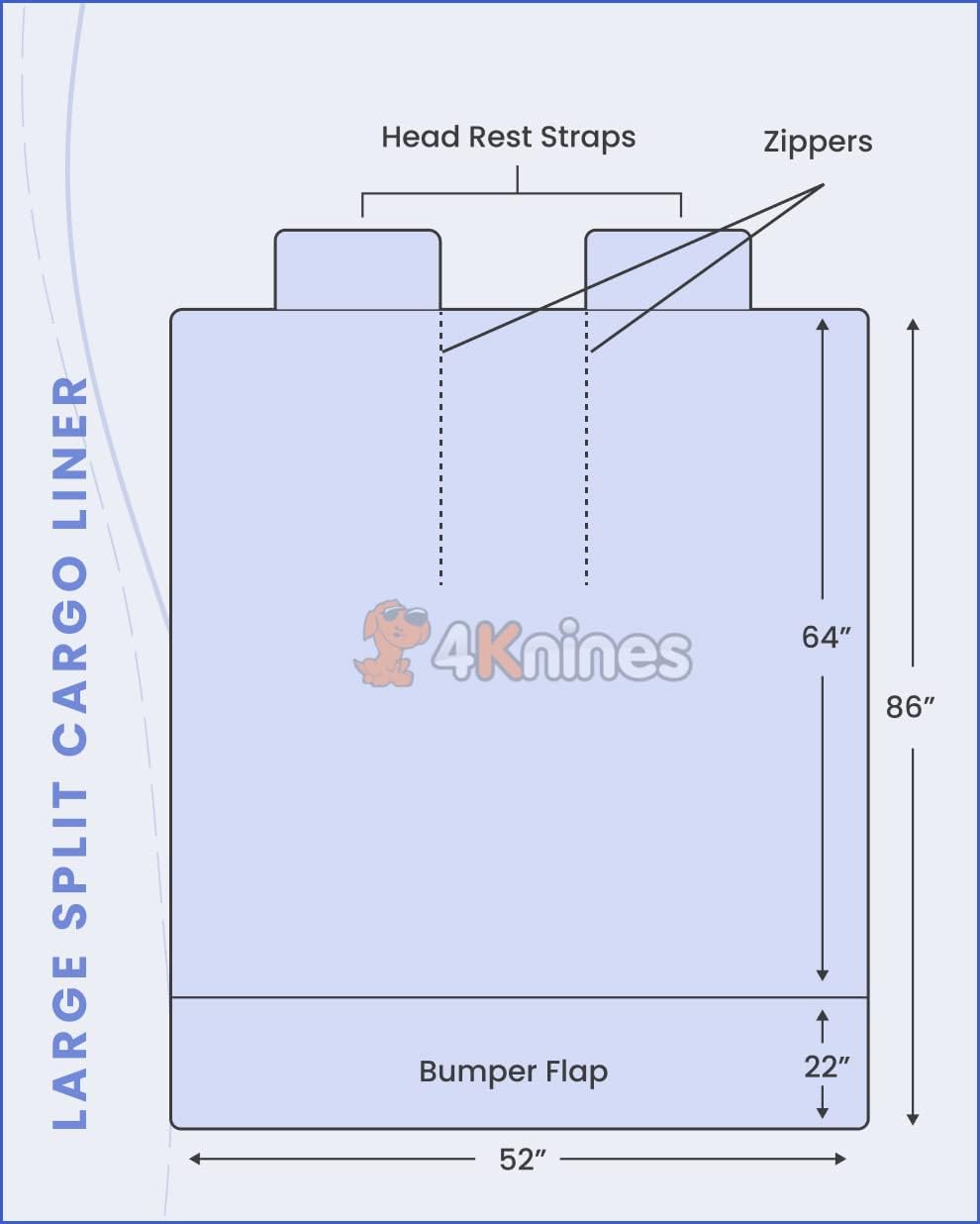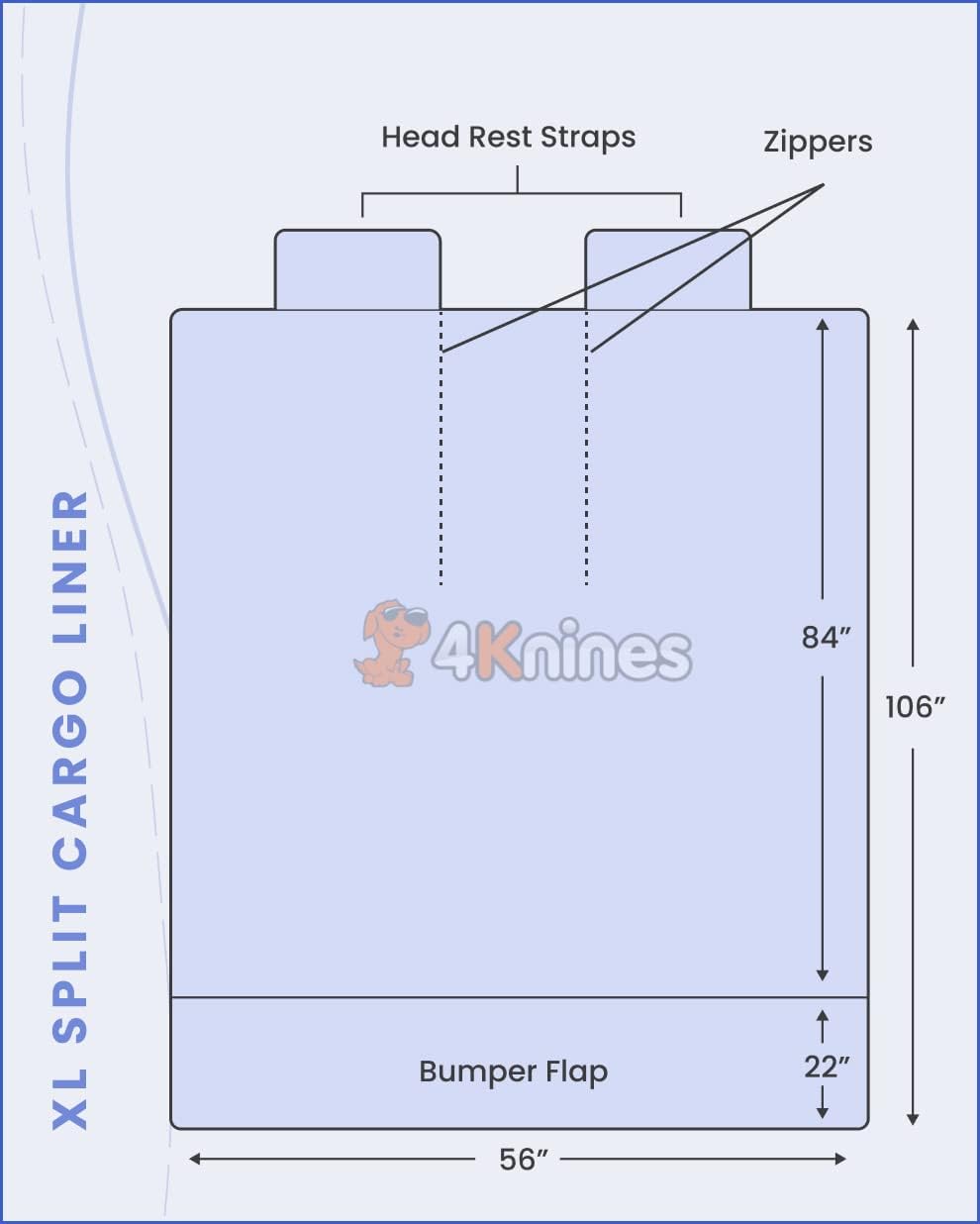 • K9-Shield WATERPROOF, NON-SLIP LAYER - Special non-quilted waterproof laminate layer makes the cargo liner completely waterproof while the non-slip backing keeps the cover from moving around (seams and zippers are not watertight). K9-Shield is a special textile laminate developed by 4Knines to provide maximum protection for your vehicle.