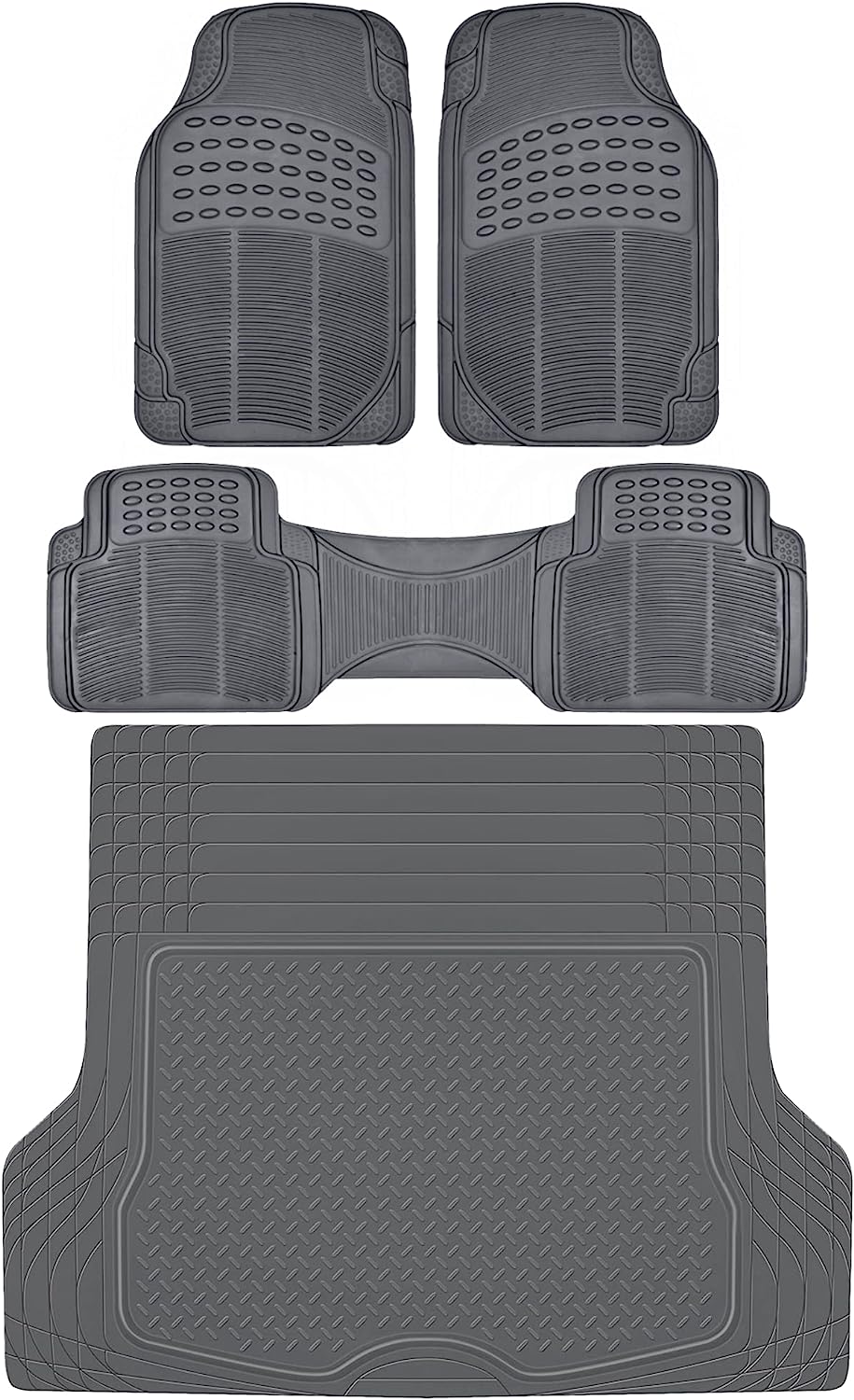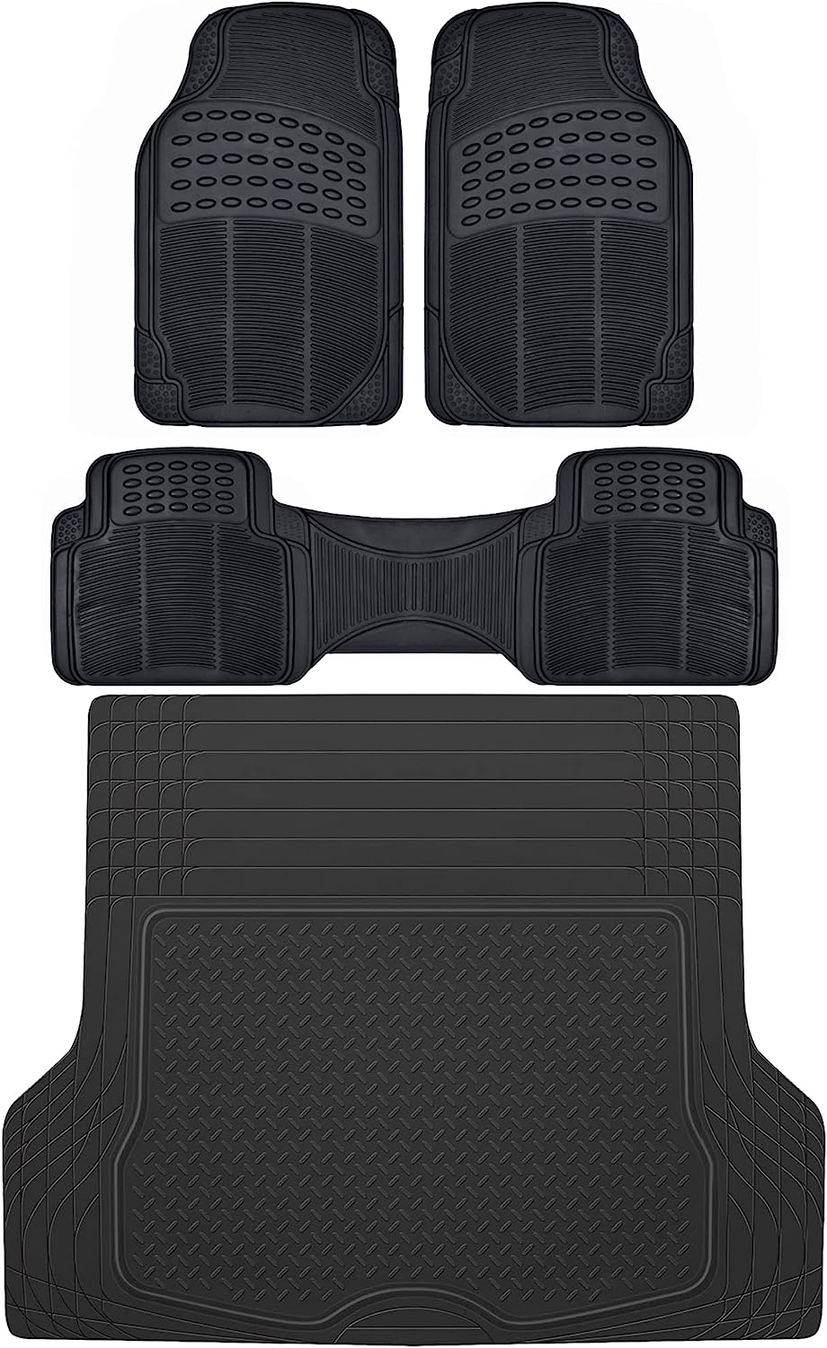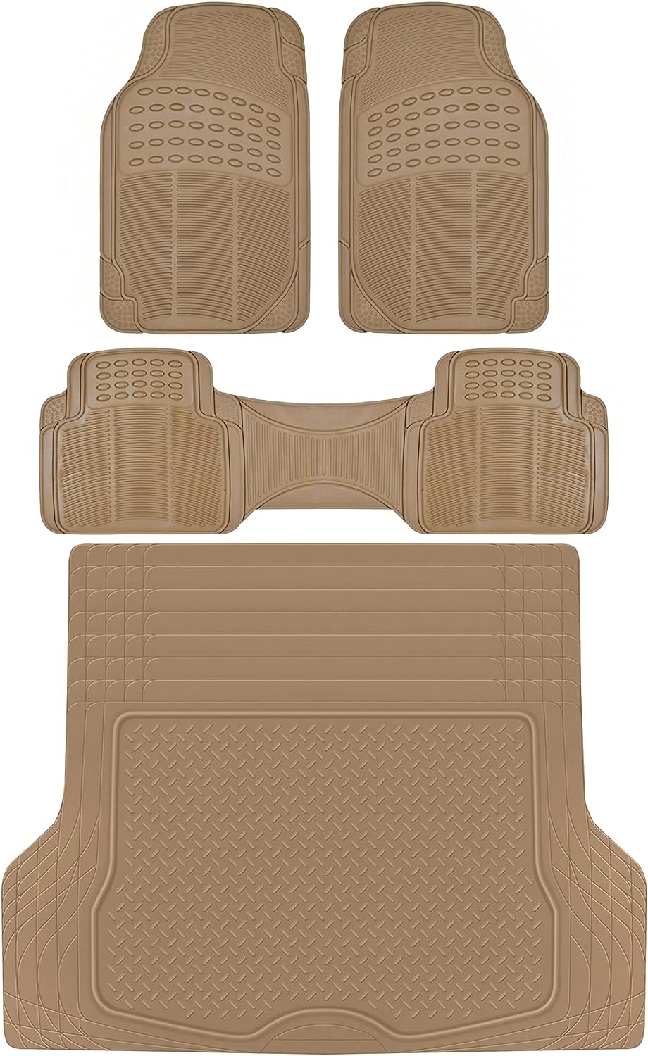 BDK USA Quality Item. The MT-783-785 combo series mats are designed with your TRUCKS SUV VANS auto care in mind. The uniquely constructed linear and diagonal ridges are placed strategically to maximize the dirt trapping capabilities of this 4-piece 3-row mats. MT-783-785 Combo Series mats by BDK are constructed of the highest quality of rubber polymer unlike our competitor's copied versions. This hi-tech material allows the mat to be easily molded and it gives it the flexibility to accommodate your daily wear and tear. Furthermore, it adds longevity to your car flooring protection.