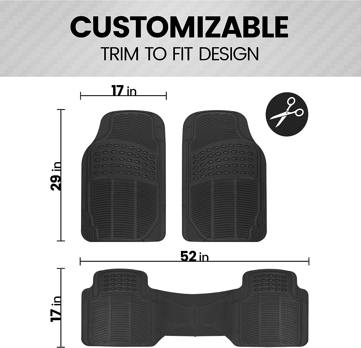 BDK ProLiner Floor Mats for Cars Trucks SUV, Black 3-Piece Heavy Duty Car Mats with Universal Fit Design, All Weather Car Floor Liners