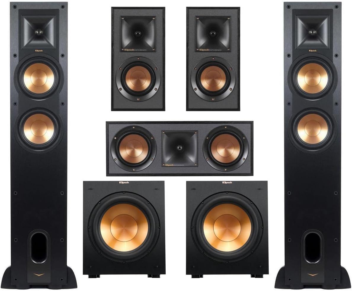 Klipsch Reference 5.2 Home Theater System, 2X R-26FA Floorstanding Speaker, R-52C Center Channel Speaker, 2X R-41M Bookshelf Speaker, 2X R-12SW Subwoofer, Black