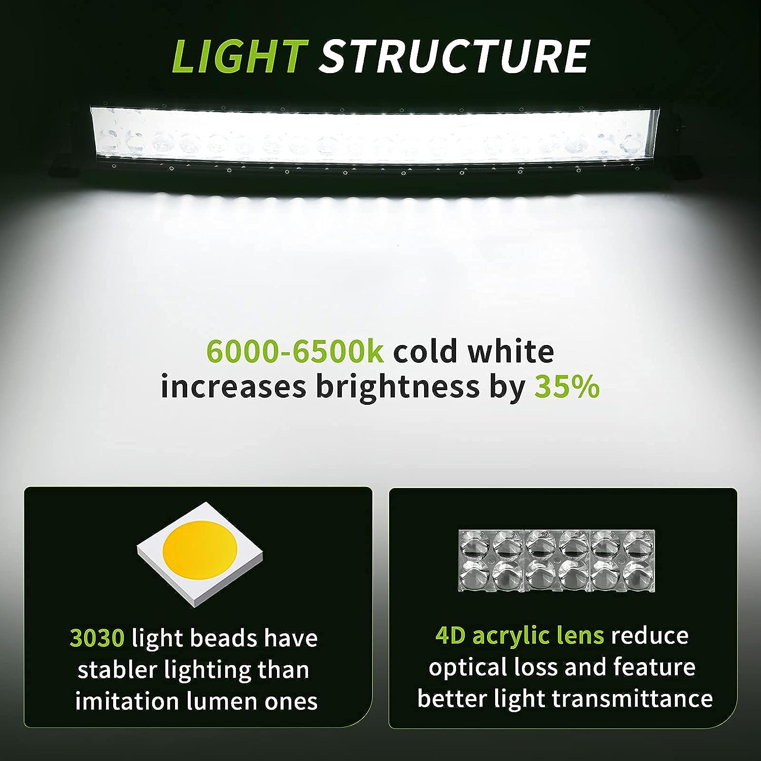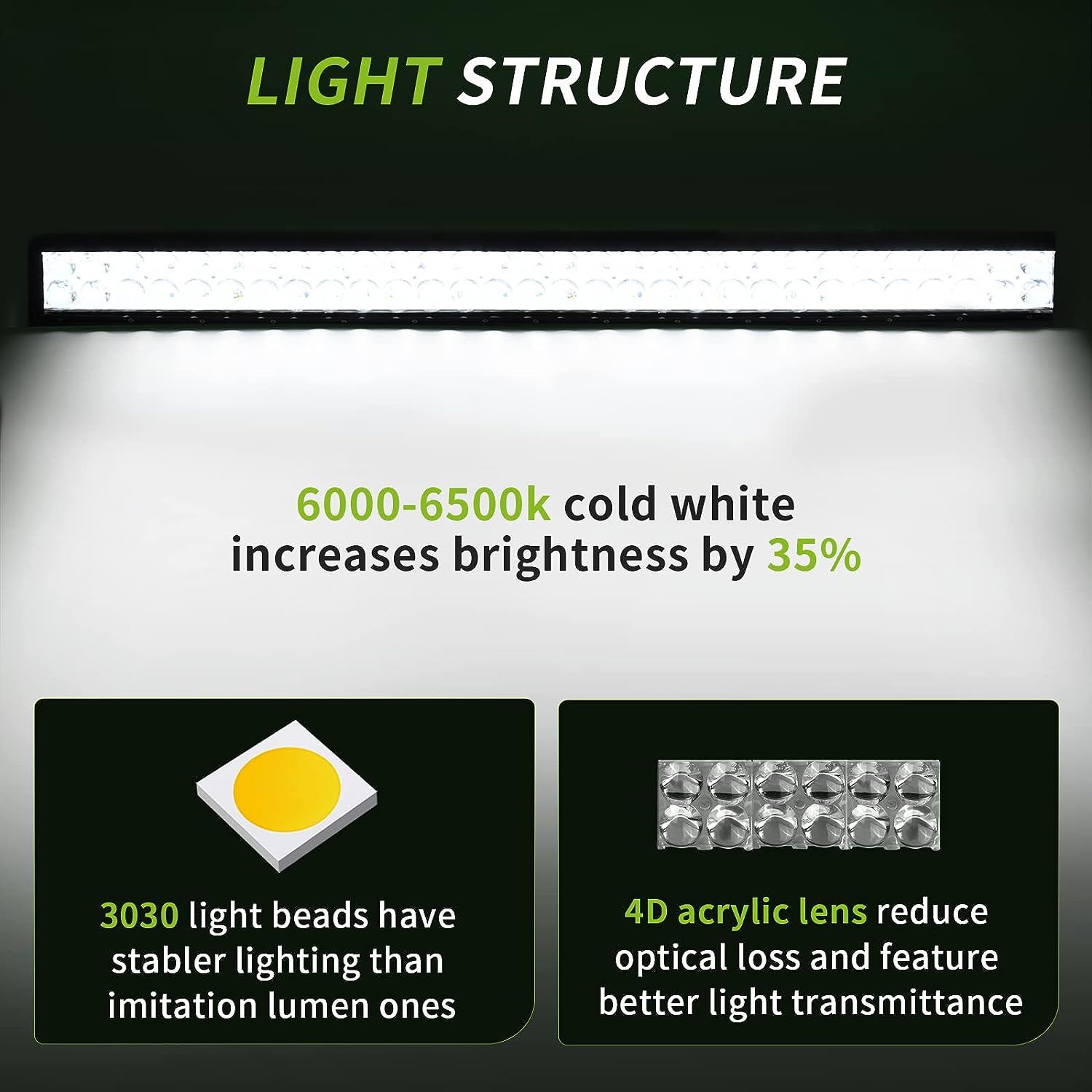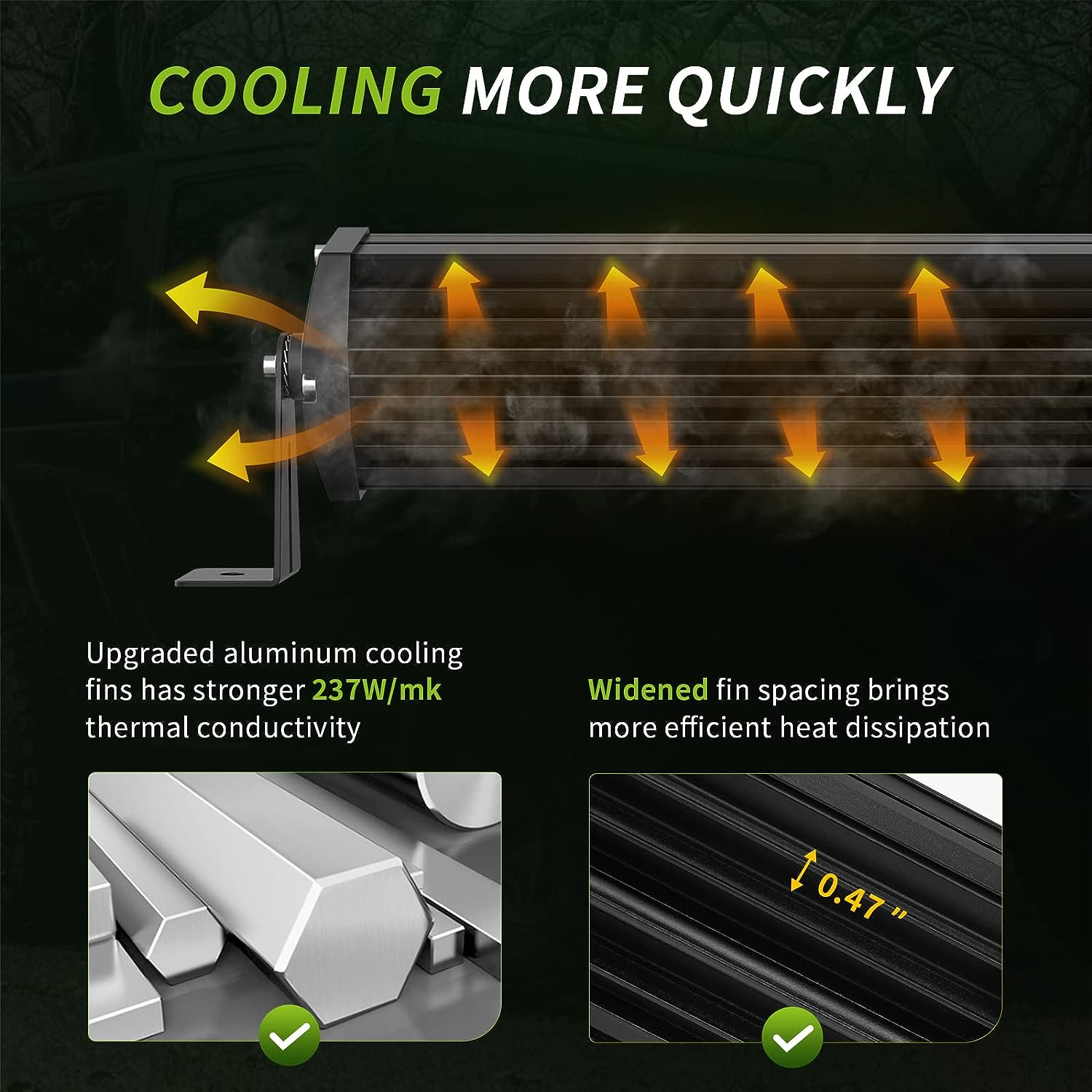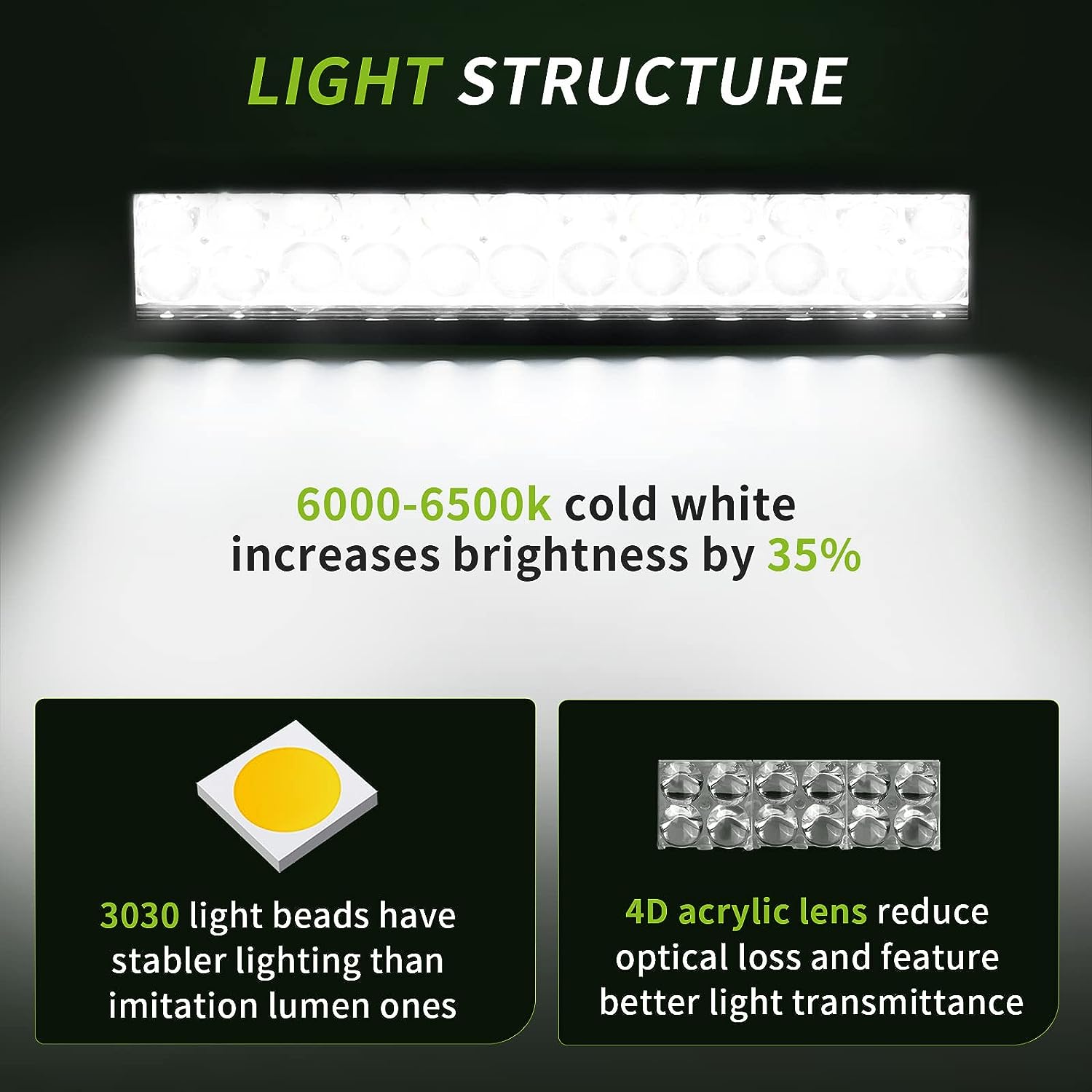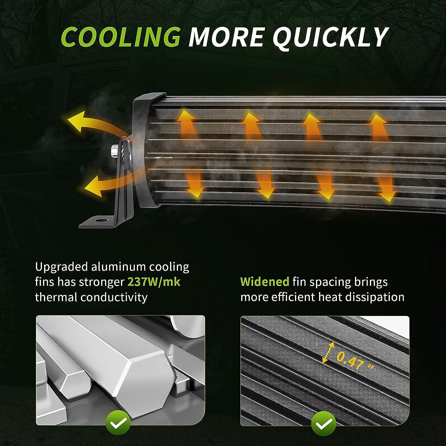 • [IP68 WATERPROOF & ANTI-CRROSION] – This light bar is made of 6063 thick die-casting aluminum, not only highly waterproof and crrosion protection; but also has a good heat dissipation effect and no worry about fastness; can be used in rainy day or other severe environment as you like.
