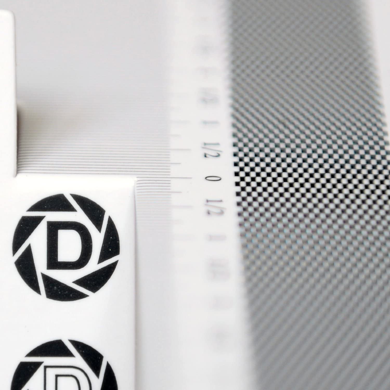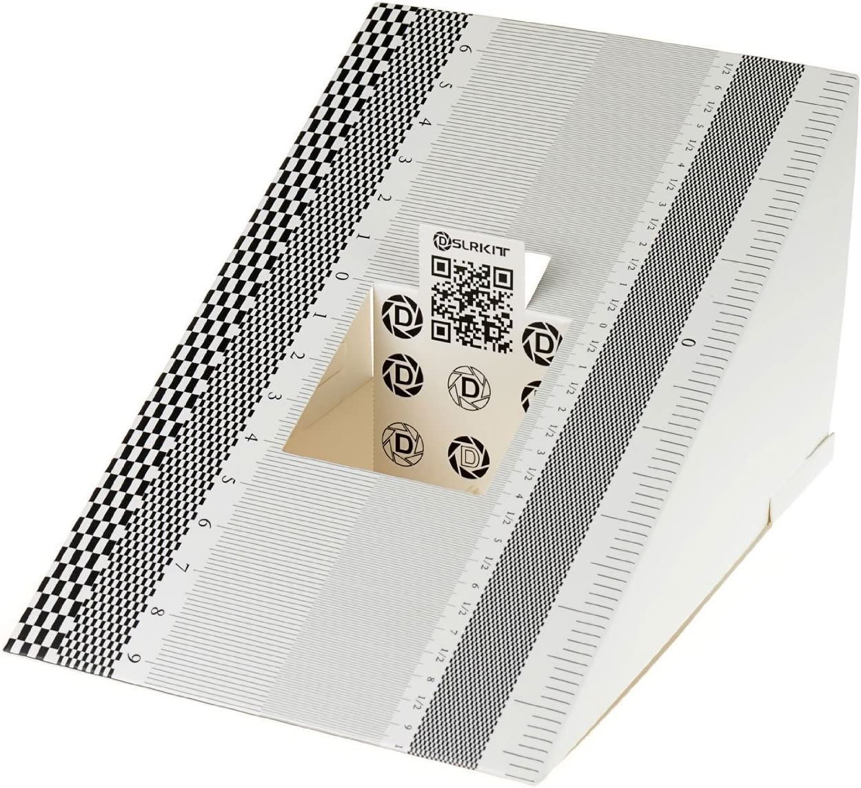 This compact ruler allows you to determine if your lens is auto-focusing accurately as it should. It is an essential tool that is particularly useful when shooting with a shallow depth of field, where focusing should ideally be "spot on". You can use this ruler to determine how "off" the focusing is for a particular camera / lens combination and, on supported cameras, adjust the camera's auto-focus settings to resolve this.