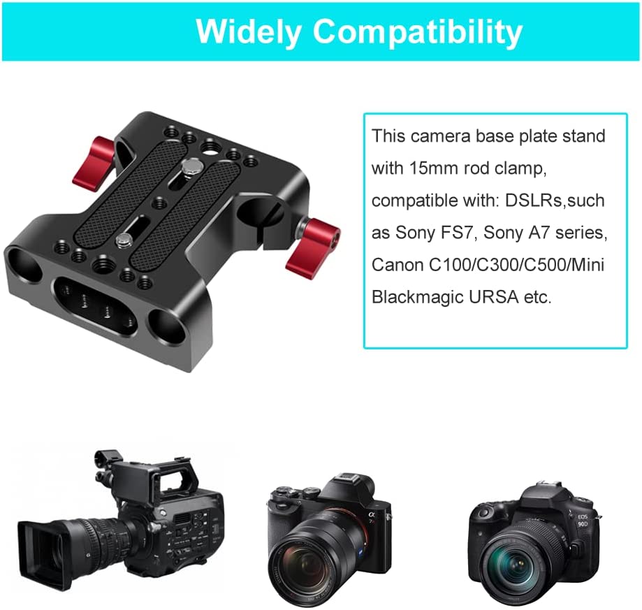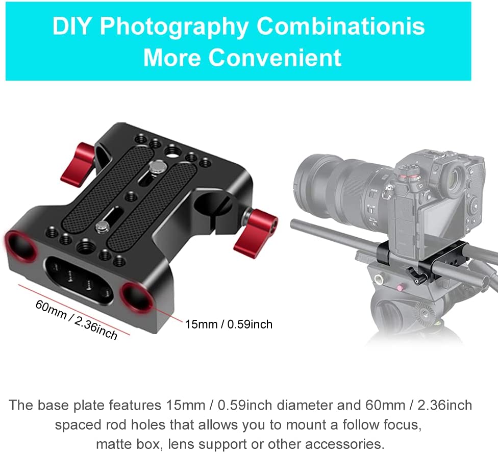 • ✅【Camera Tripod Mounting Base plate】:This Dual 15mm LWS Rod Clamps Mounting Plate is designed to provide front and rear rod support for your cine-style camera, 60mm spaced rod clamps that allows to attachment of 15mm rods, then lens supports, matte box, follow focus, etc.