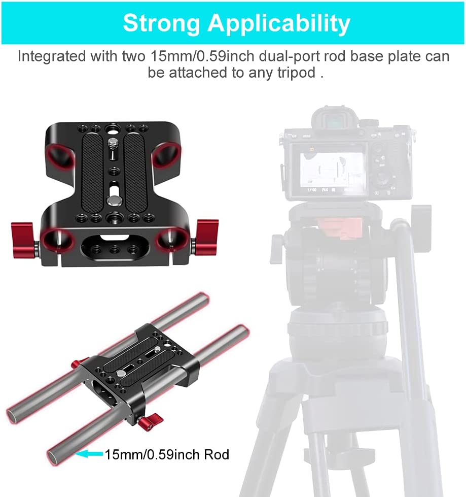 • ✅【Rubber Cushions】: There are rubber cushions on the base plate, which increases friction for cameras to prevent the twisting. Also, the rubber cushions can protect the camera be scratched with this MEKNIC camera base plate with rods.