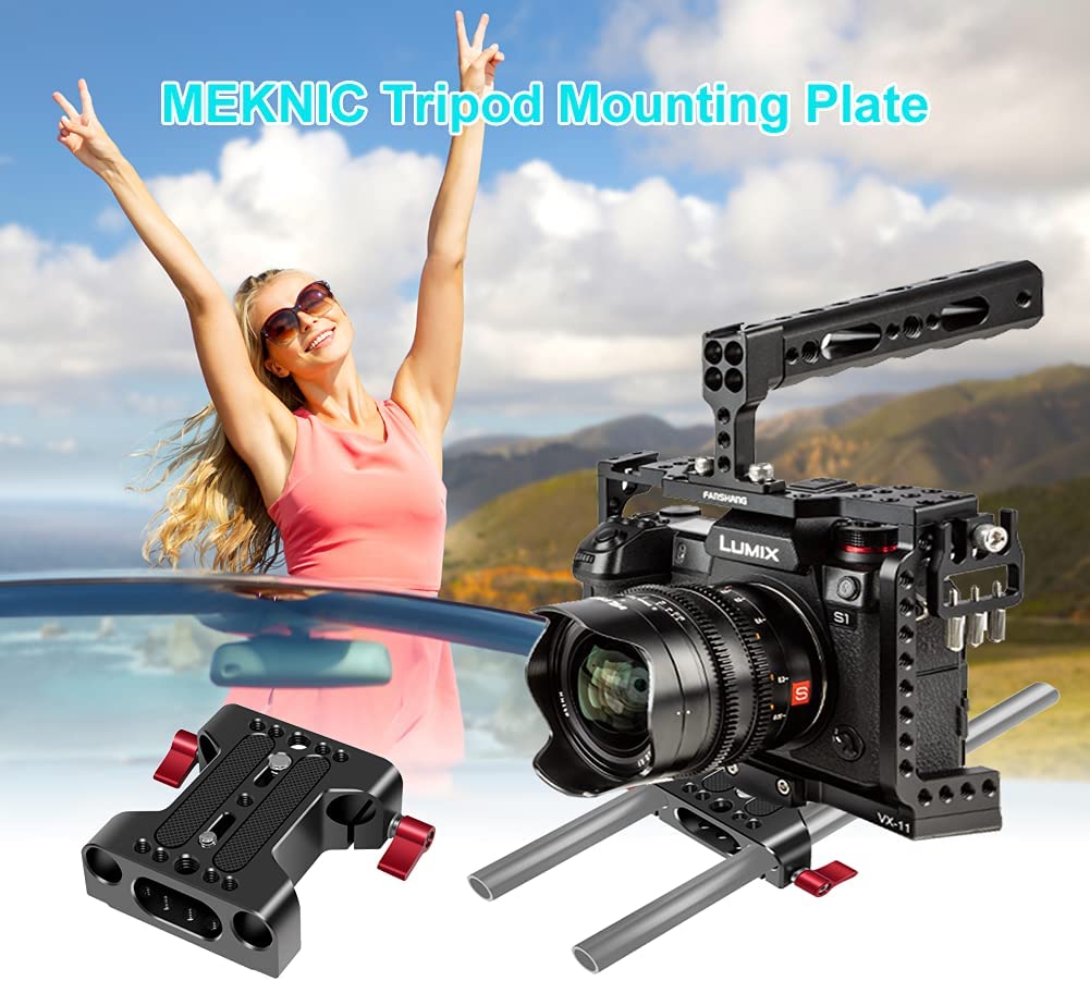 MEKNIC Camera Base Plate with Dual 15mm Rod Rail Clamp for Suitable for All Kinds of Rabbit cage and DSLR Rig Support System with Tripod Mounting Baseplate (Premium)