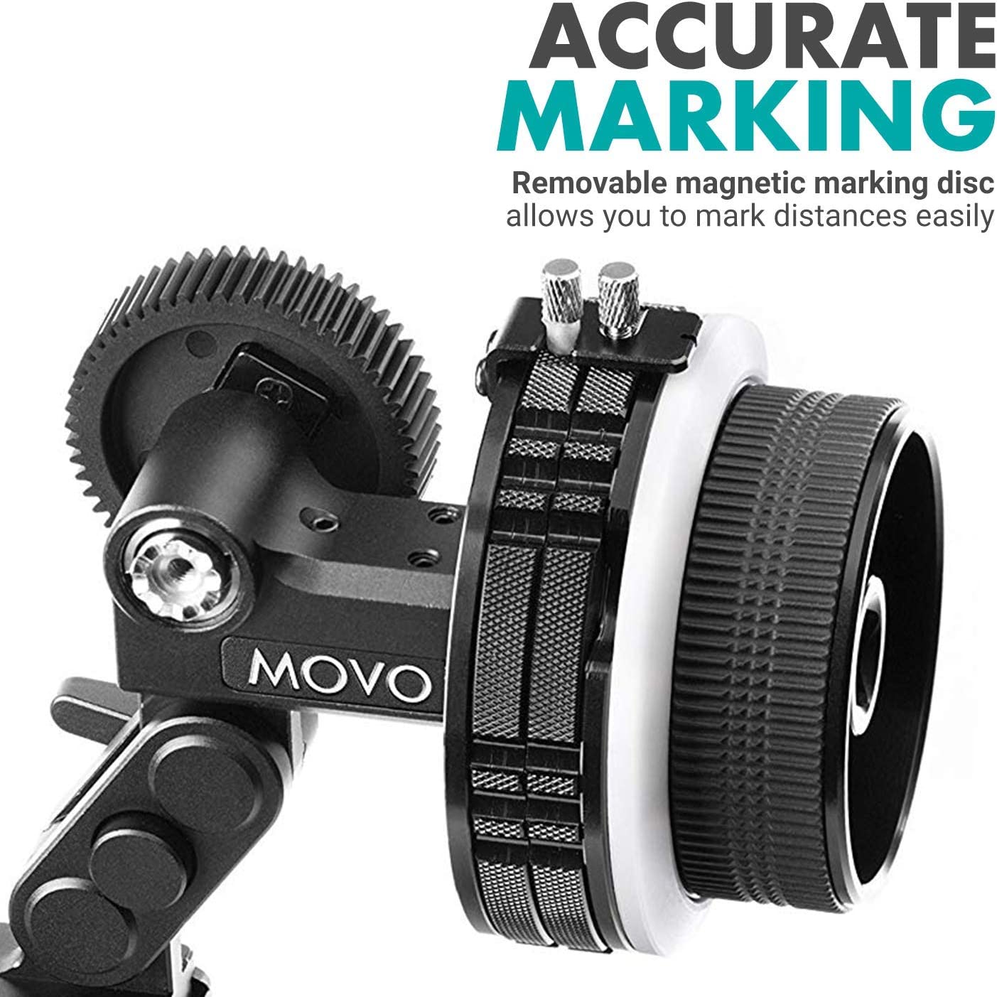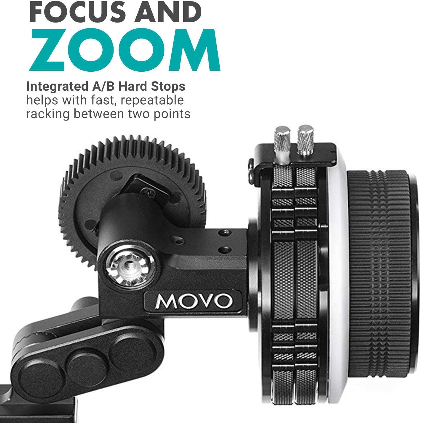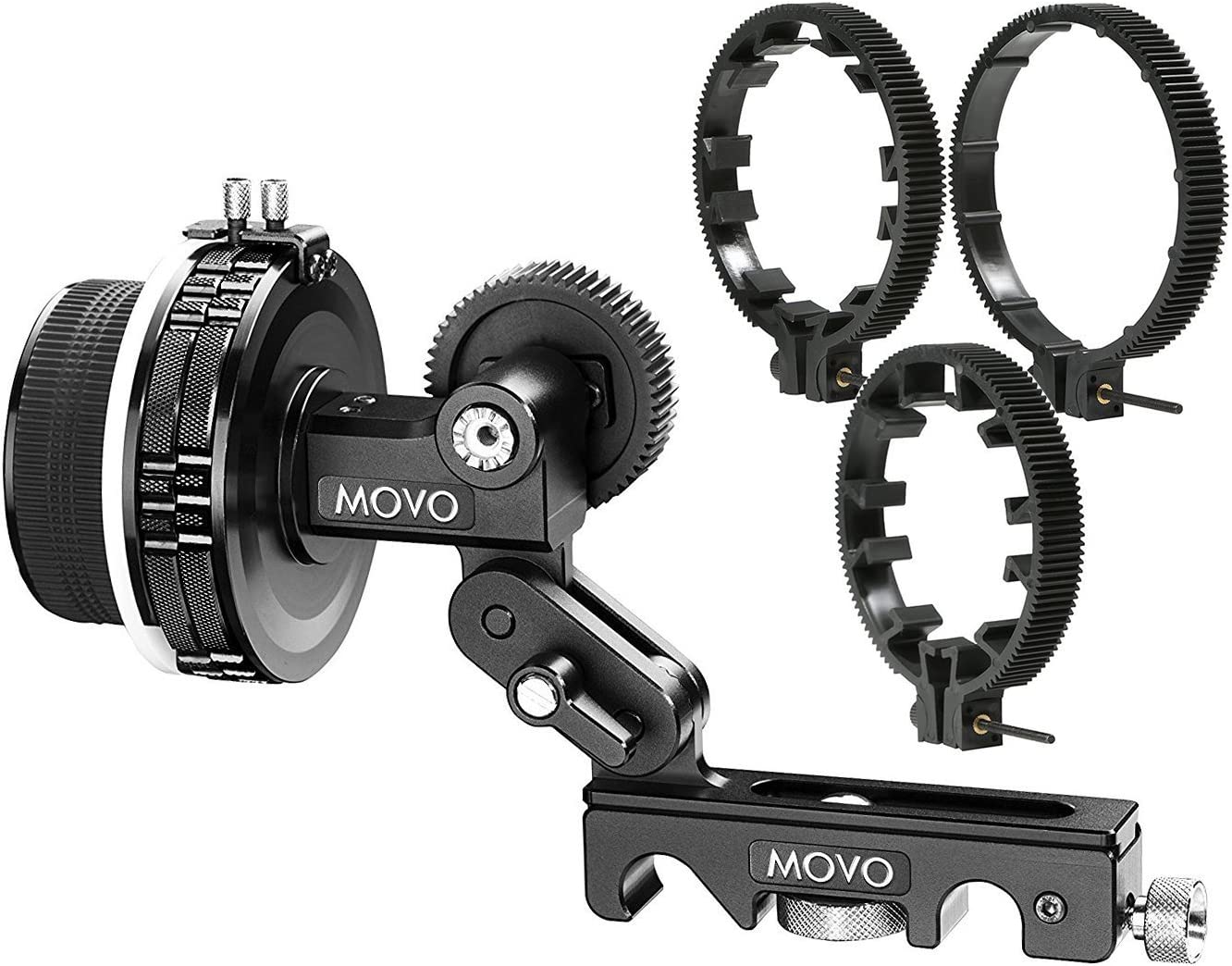 Movo F2X Precision Follow Focus System with Hard Stops and 65mm, 75mm, 85mm Adjustable Gear Rings