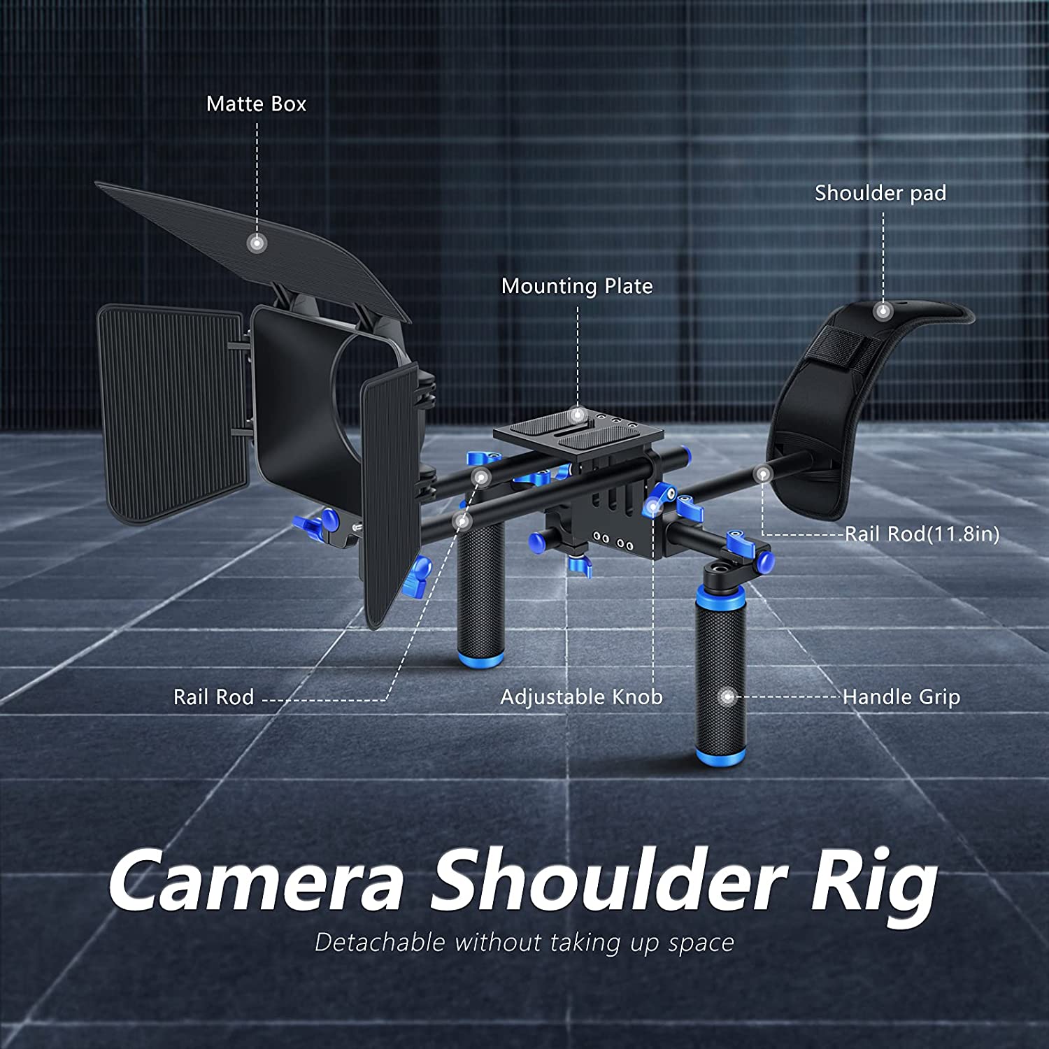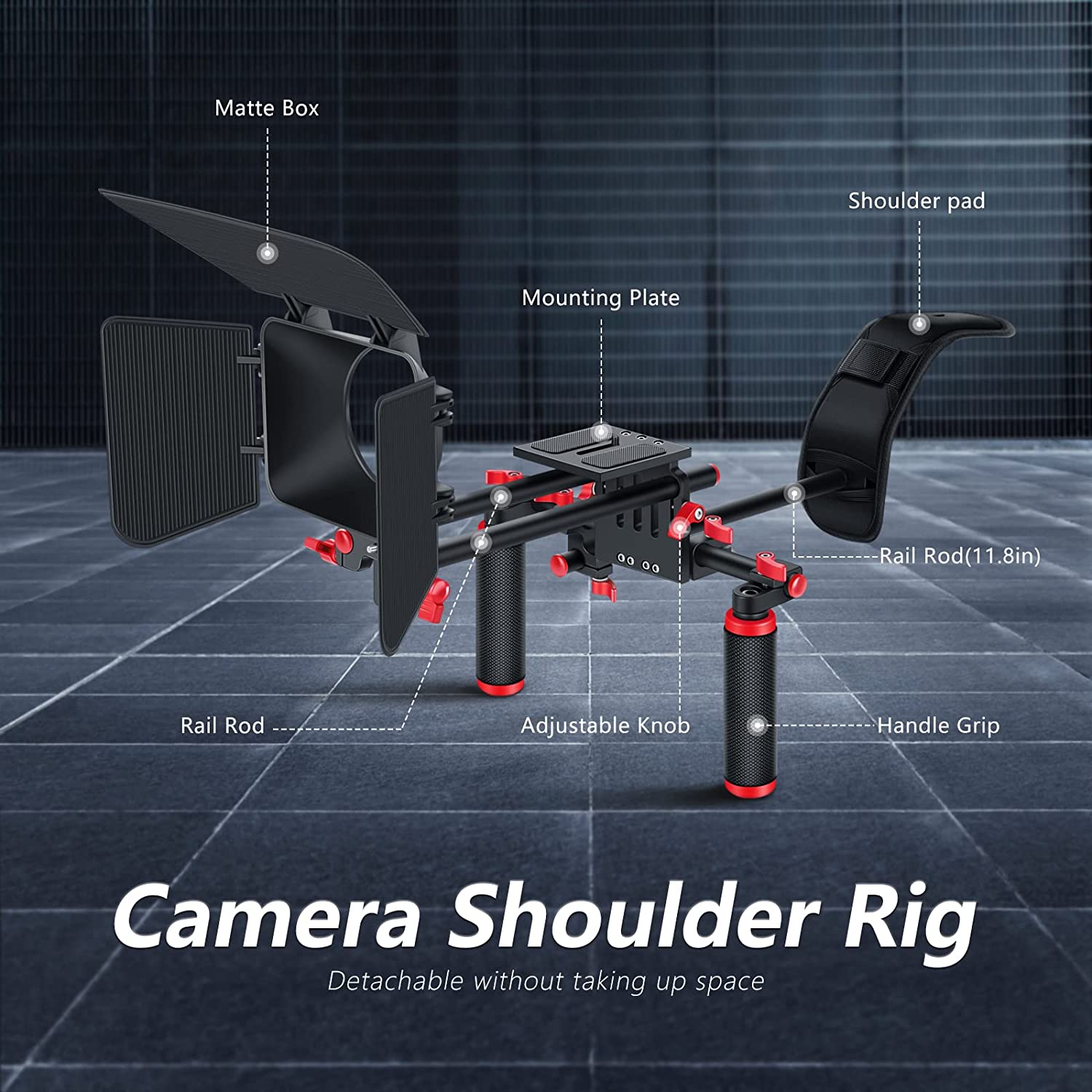 • 【Package Contents】 Neewer Shoulder Pad, 15mm Rod Rail System with Dual Hand Grips, Matte Box