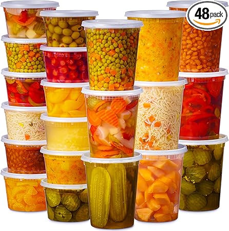 48 Pack Plastic Deli Containers with Lids (16, 32 oz 24 Each) - Food Storage Containers with Lids - Clear Disposable Meal Prep Containers, BPA Free, Stackable, Leakproof, Microwave and Freezer Safe