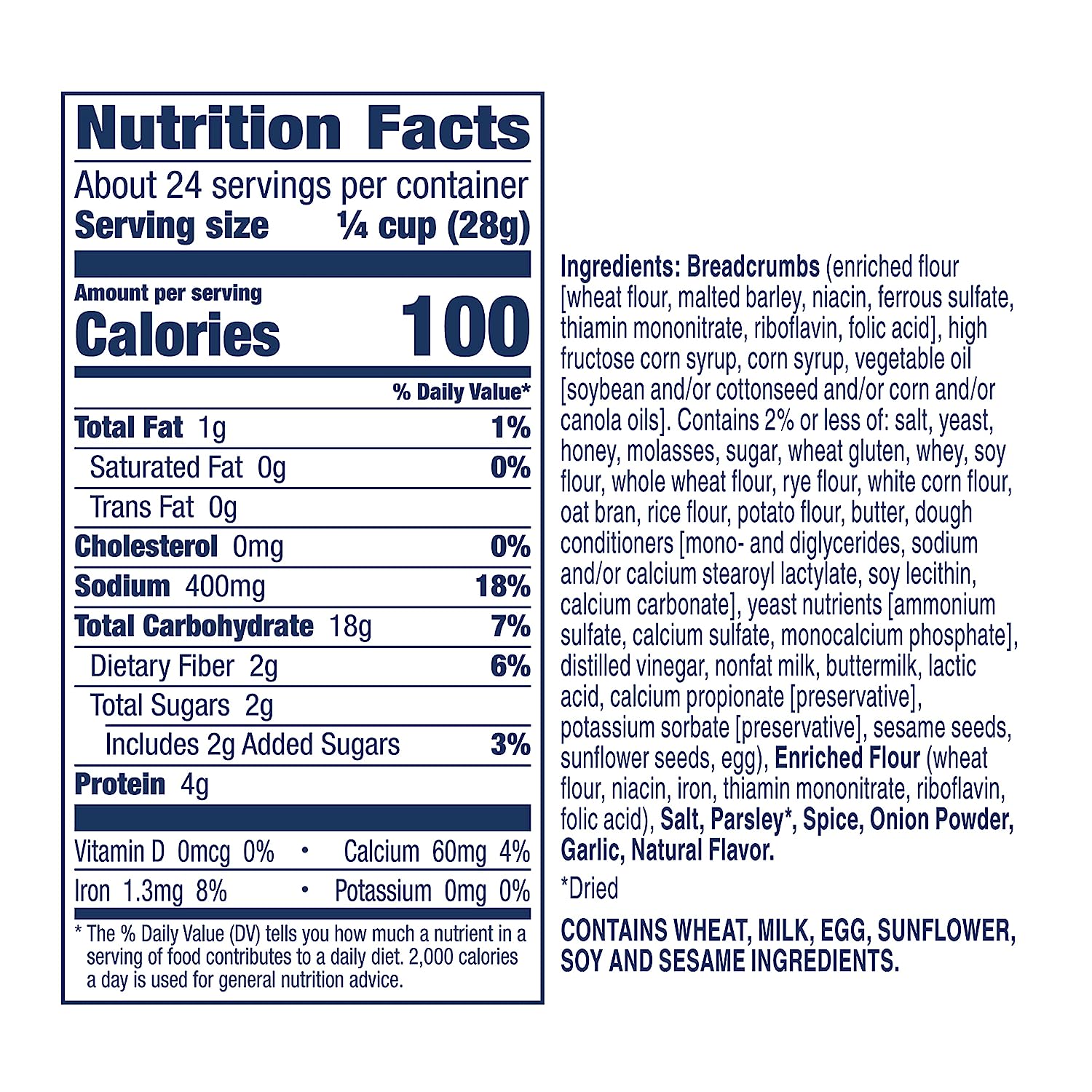 A versatile addition to the well-stocked pantry, these Progresso bread crumbs lend an Italian-style flair to any recipe. These bread crumbs are perfect for adding extra flavor, depth and crunchy texture to classic Italian dishes like eggplant parmesan, braciole or stuffed artichokes with a medium ground bread crumb and savory herb seasoning. Enjoy the consistent goodness of a longtime culinary classic. Try these flavorful bread crumbs for your next fried chicken, breaded mushrooms and zucchini, sautéed green beans, potatoes au gratin or crunchy casserole recipe for an added tasteful twist. At Progresso, we’re passionate about making great products. We've been creating premium soups for more than 100 years. And today, Progresso still uses quality ingredients for a tasteful flavor found only in our line of products.