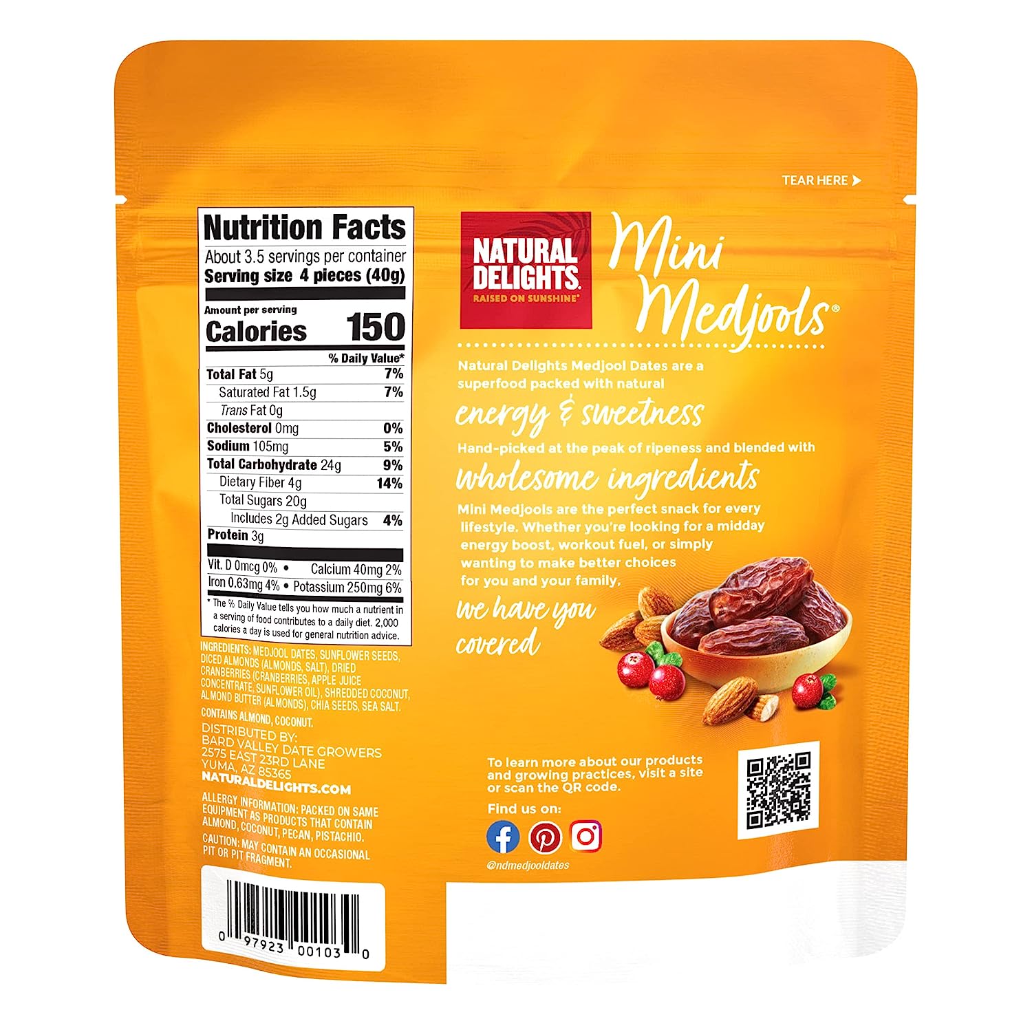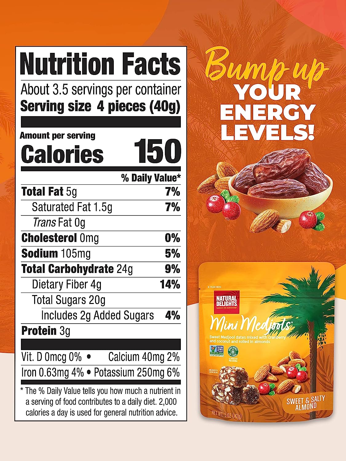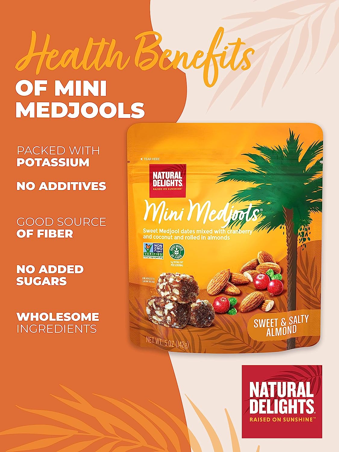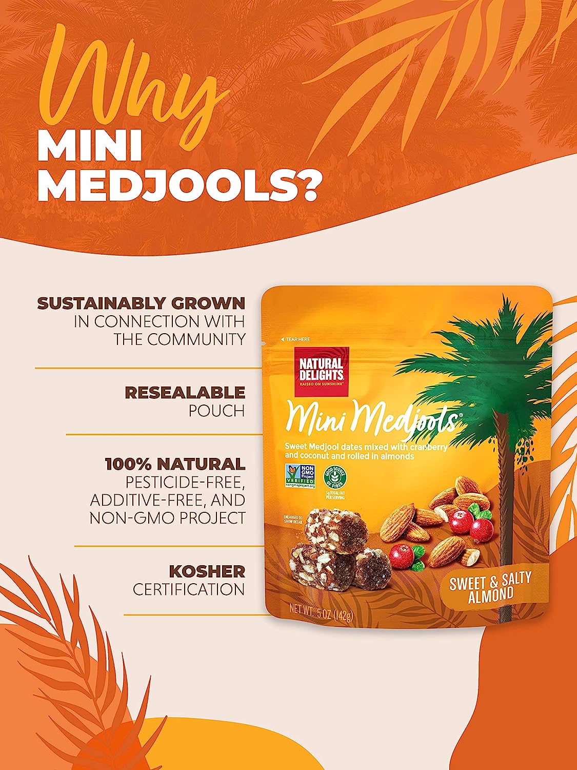 • RAISED ON SUNSHINE - We work with Earth’s resources to sustainably grow and harvest our Medjool Dates. They are raised on sunshine - from bud to ripeness & are hand-picked - no pesticides, additives, or GMOs