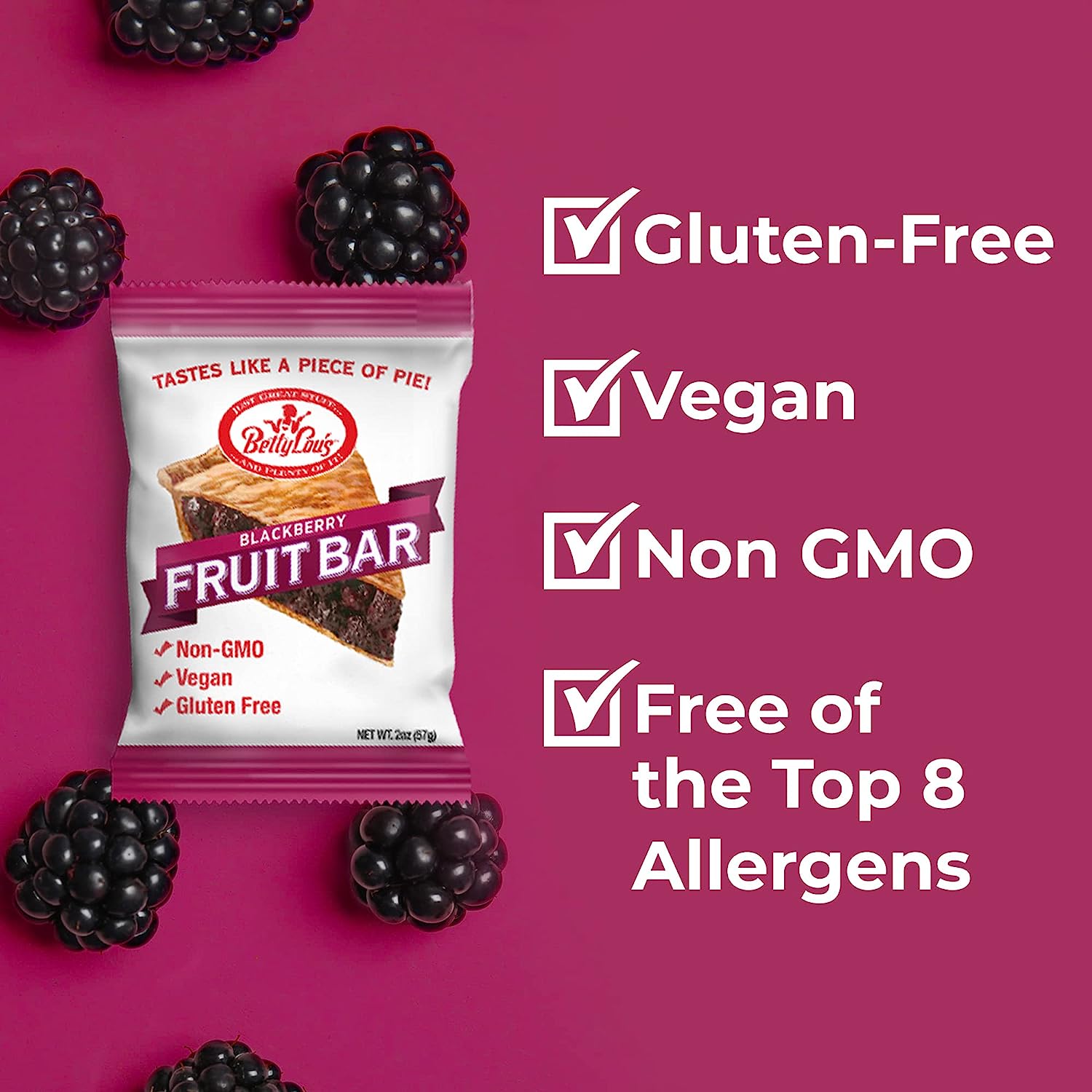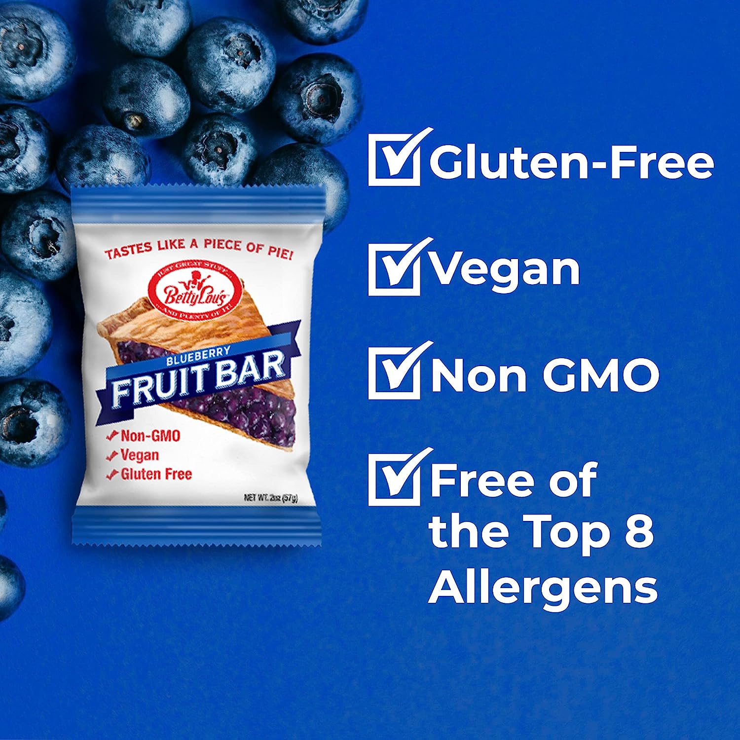 • ALL-NATURAL SWEETNESS: Forget sticky-sweet jams & jellies. Each Betty Lou's breakfast bar is loaded with real fruit chunks & naturally sweet juices for intense fruity flavors that are never overpowering.