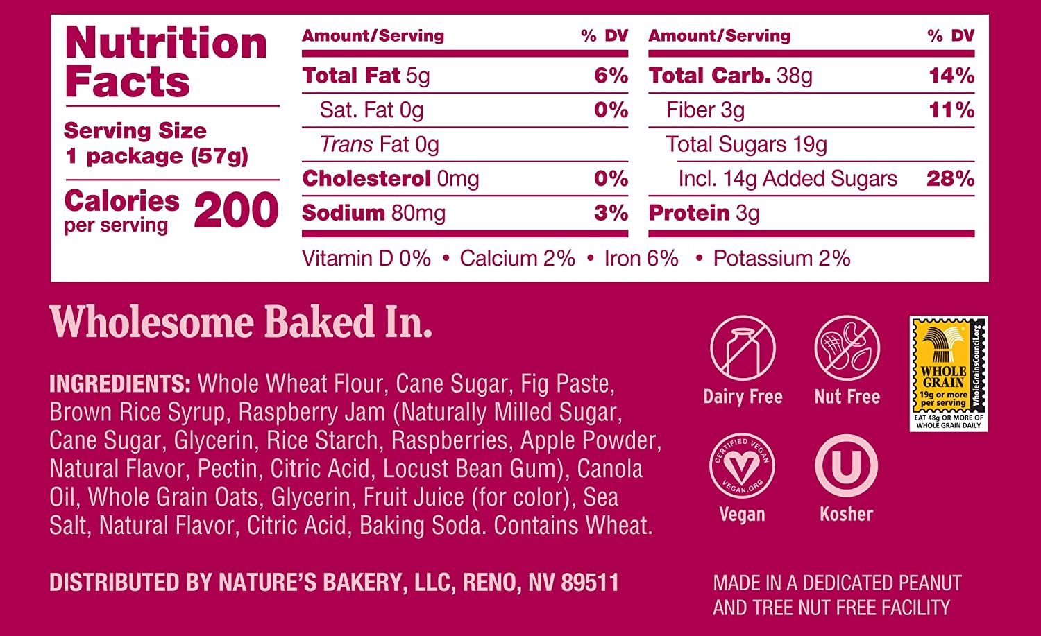 Nature's Bakery Whole Wheat Fig Bars are fuel for everyday life's great journeys. Made with wholesome and natural ingredients, our delicious soft-baked baked bars are filled with real fruit for an on-the-go snack that satisfies. Perfectly portioned in two bars, our twin-packs don't melt, crumble or break--they're the daily snack companion you can rely on to be there when you need them most.