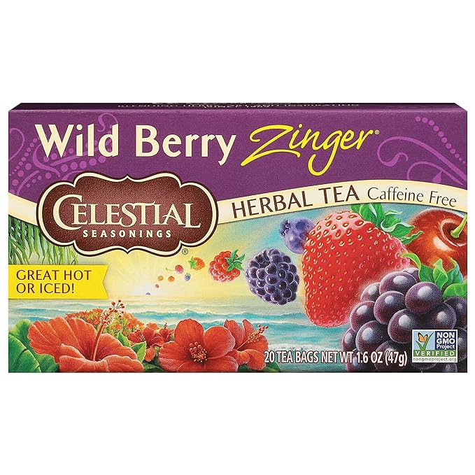 Celestial Seasonings Wild Berry Zinger Herbal Tea, Caffeine Free, 20 Tea Bags Box