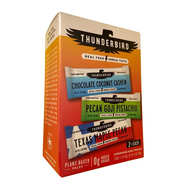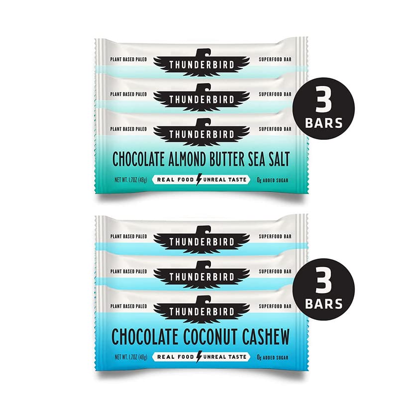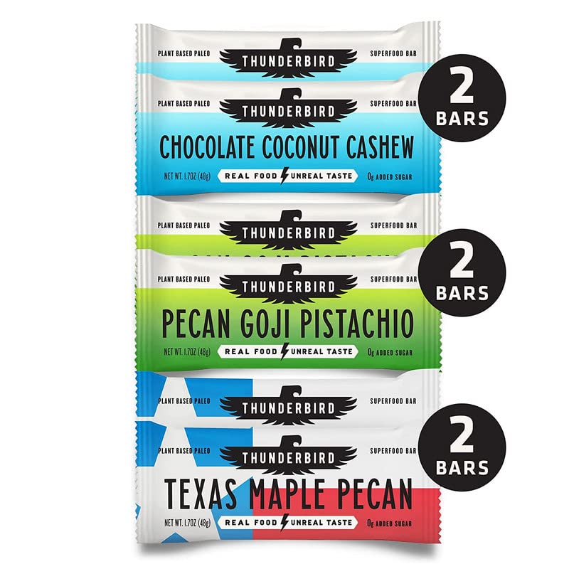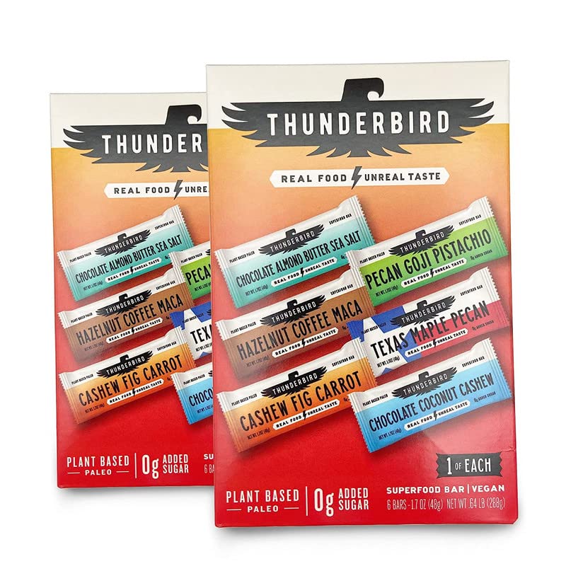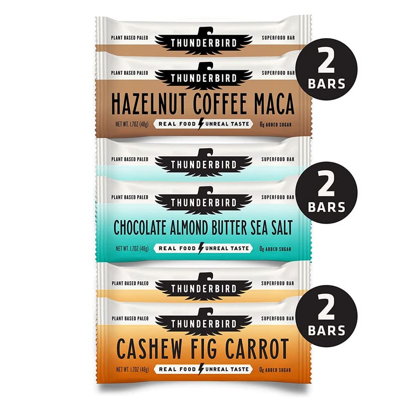 Thunderbird Paleo and Vegan Hiking Food Snacks - Real Food Energy Paleo Bar - Fruit & Nutrition Nut Bars - No Added Sugar, Grain and Gluten Free, Non-GMO, 6 Pack (Bestsellers Variety Pack)
