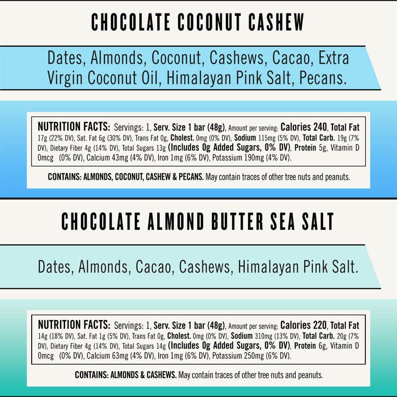 • Less is more – Our dried fruits add all the natural sweetness needed with zero added sugar (real or artificial), agave, syrup or honey. Dairy free, soy free, and grain free make these nutritional bars easy to digest whether you are working hard or playing hard. Use them as a boost in the morning as breakfast bars when you're on the go!