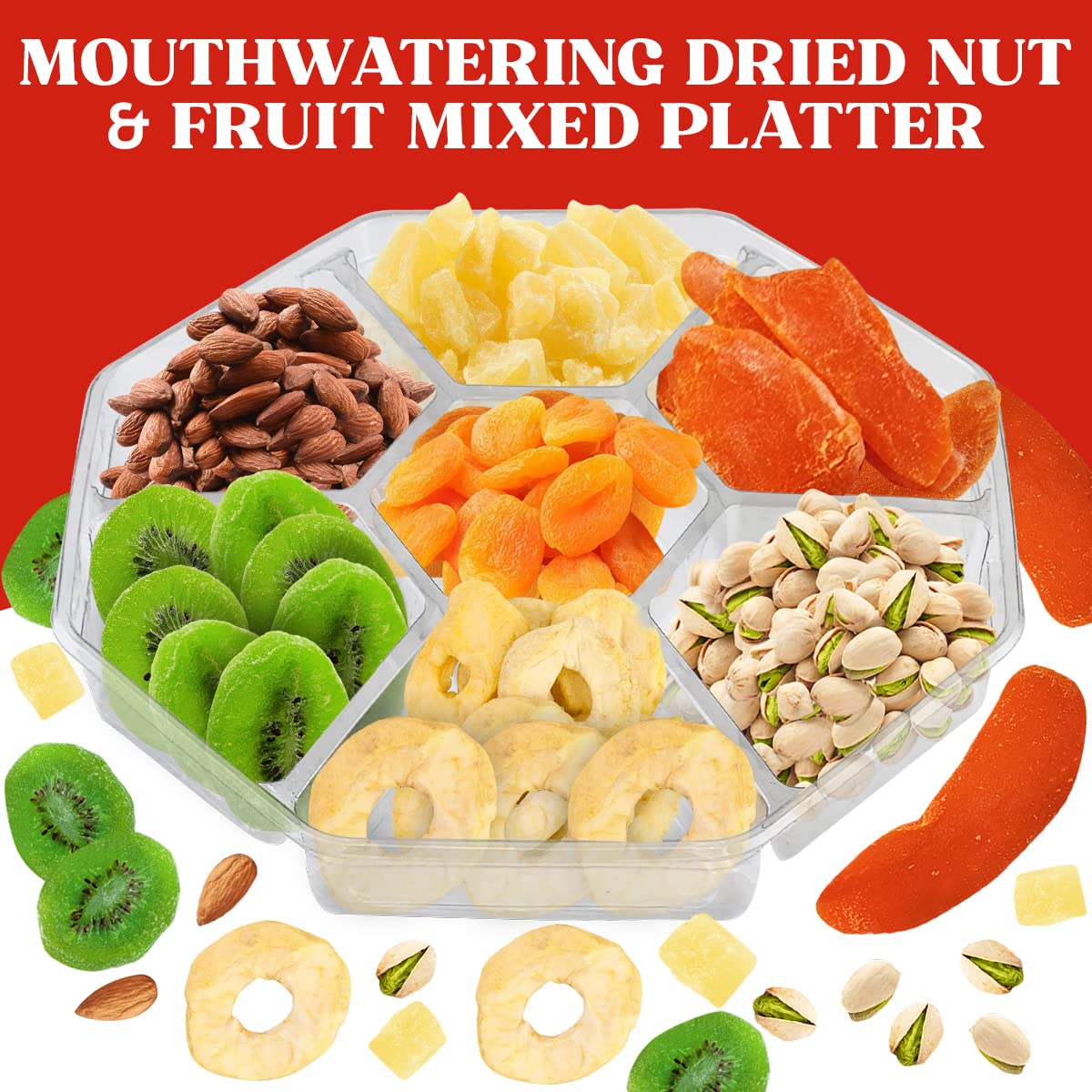• A Versatile Snack: Perfect for road trips, office breaks, or school lunches, this dried fruit and nut platter is highly portable and ready to serve. It can make a perfect snack for family gatherings or you can delight your loved ones at a movie night.