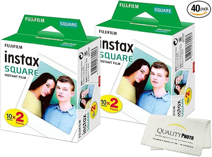 Fujifilm Instax Square Instant Film - 40 Exposures - for use with The Fujifilm Instax Square Instant Camera + Quality Photo Microfiber Cloth (40)