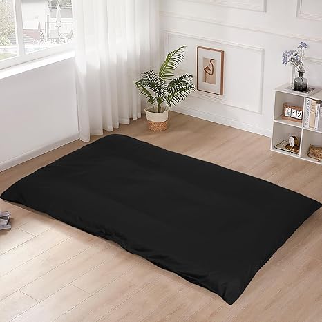 100% Cotton Floor Futon Mattress Cover (Only Cover), Soft Skin-friendly Washable Zippered Futon Cover for Traditional Japanese Floor Futon Mattress, Tatami Mattress Cover Dustproof Cover (Full, Black)