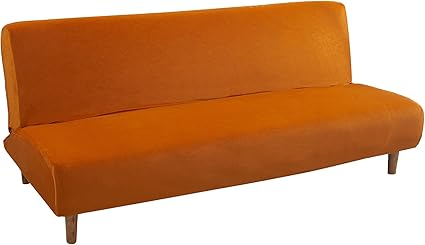 Armless Sofa Bed Cover Futon Slipcover Velvet Stretch Spandex Folding Sofa Couch Non-Armrest Furniture Protector (Velvet Orange)