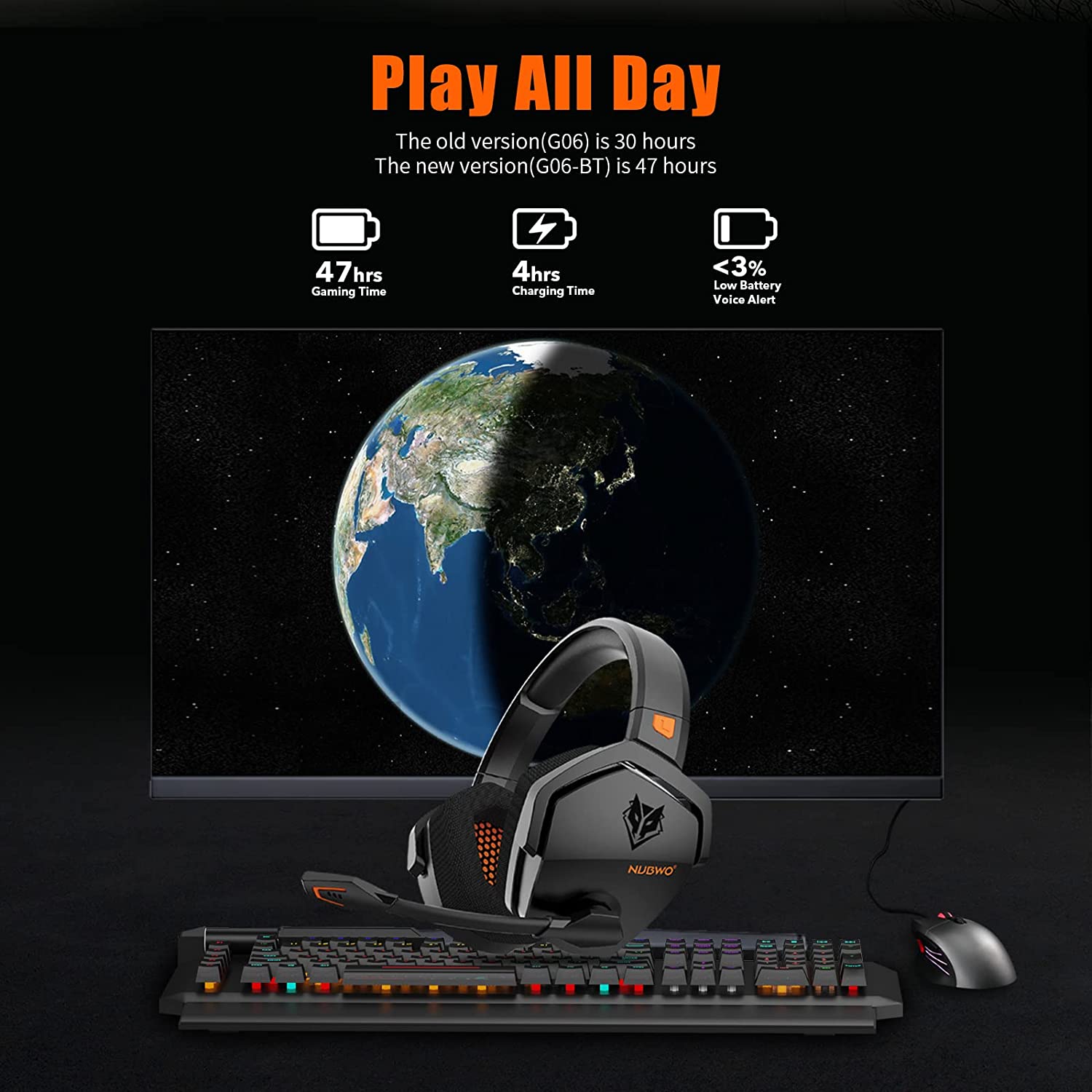 • Extended Usage Time - With an impressive 47 hours of battery life, you can game for hours on end without worrying about recharging. The NUBWO headset will alert you with a low battery tone when it's time to recharge, and a full charge takes only 4 hours. Get ready to experience the ultimate in-game sound experience with NUBWO.