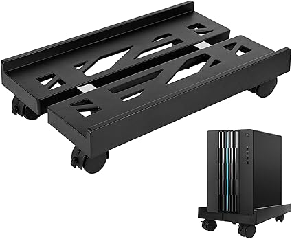 Adjustable Mobile CPU Stand, Heavy-Duty Desktop Stand with Rolling Caster Wheels, PC Riser Fits Most PC Gaming Desk Accessories•_ÎSteel Desktop Stand(Black)