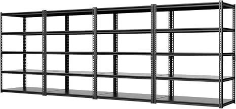 72" H Heavy Duty Garage Shelving Load 2000 Lbs Garage Storage Shelves, 5-Tier Adjustable Metal Shelves for Storage Rack Garage Shelf Industrial Shelving for Basement Warehouse Pantry