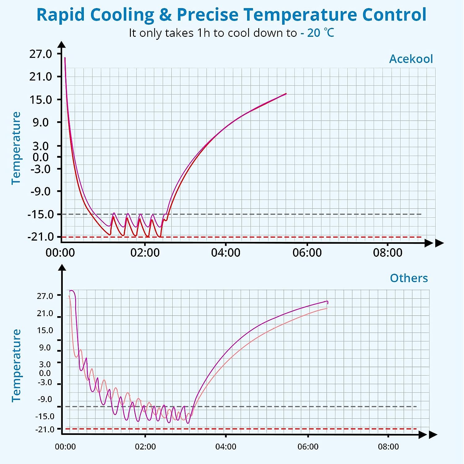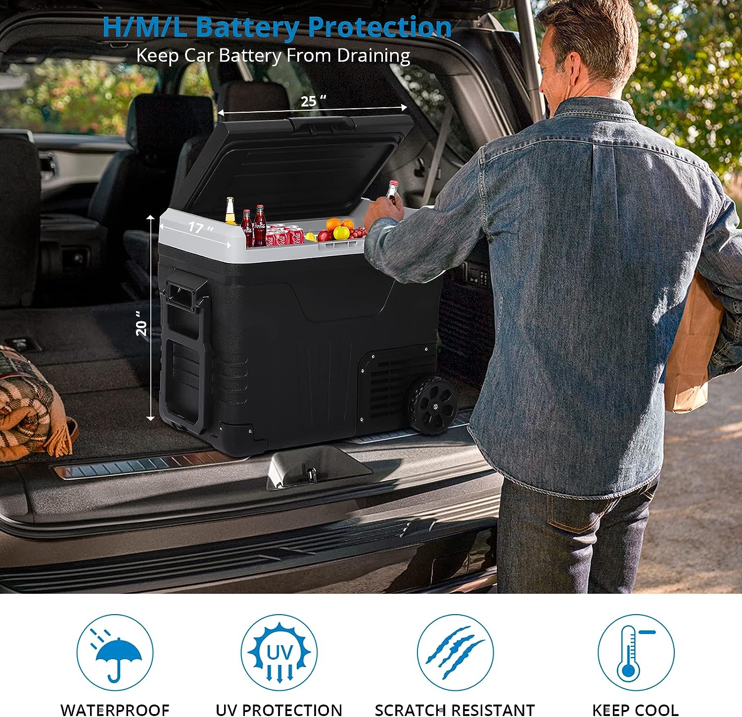 • 【Fast Cooling and Precise Temperature Control】RV travel refrigerator, fast cooling. It can cool an empty portable refrigerator to 32°F in 20 minutes. Temperature control: -4℉-68℉. Low noise: ≤45dB. It has a 3-level voltage protection mechanism of H/M/L.