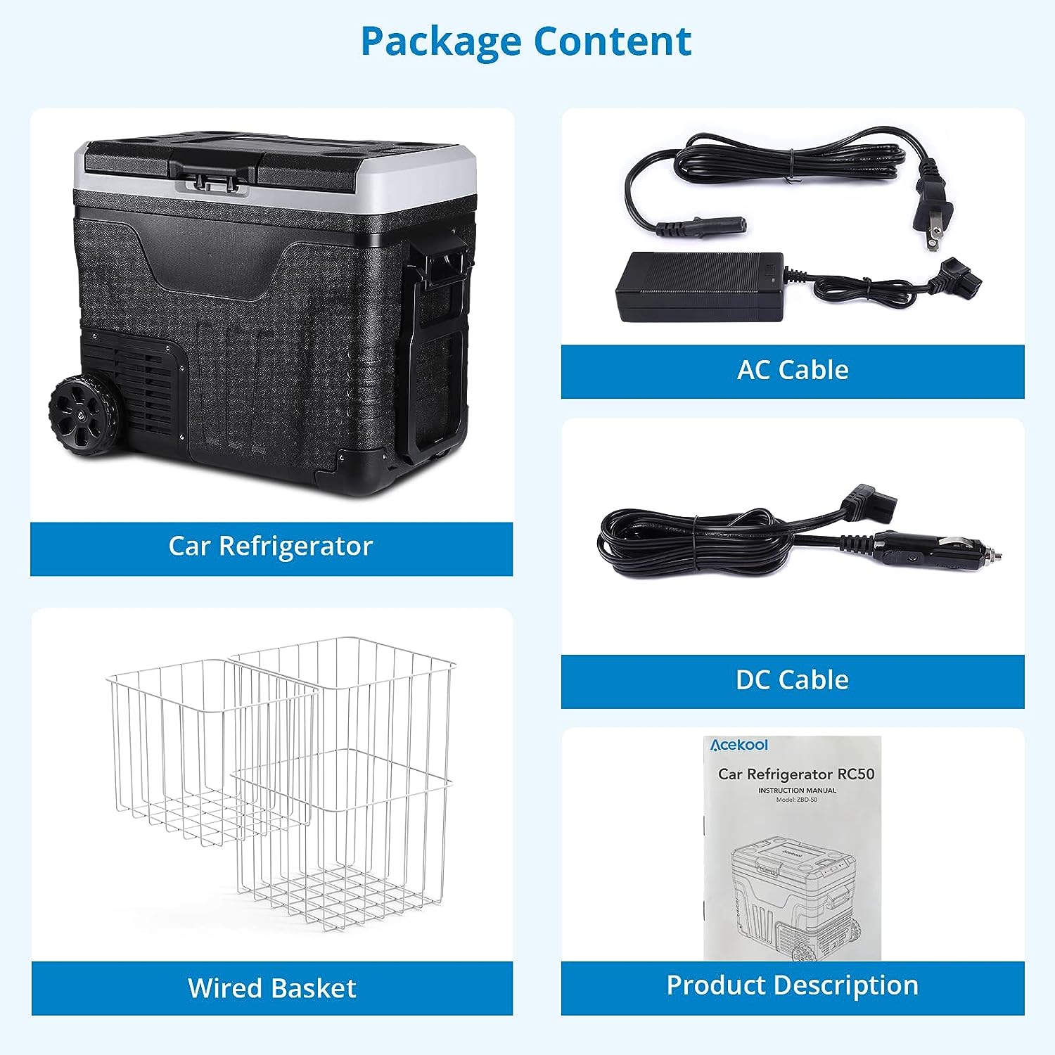 Acekool 12 Volt Refrigerator 53 Quarts/50L RV Car Refrigerator Portable Refrigerator Freezer 12/24V DC & 100-240V AC