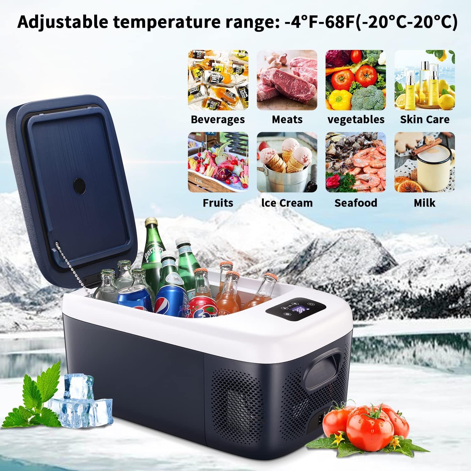 Antarctic Star Car Refrigerator 12 Volt Portable Mini Fridge17 Quart 16 Liter Intelligent Control Panel -4℉-68℉ LED Electric DC 12V/24V 100-240V AC for Beverage Wine Seafood Fruits Travel