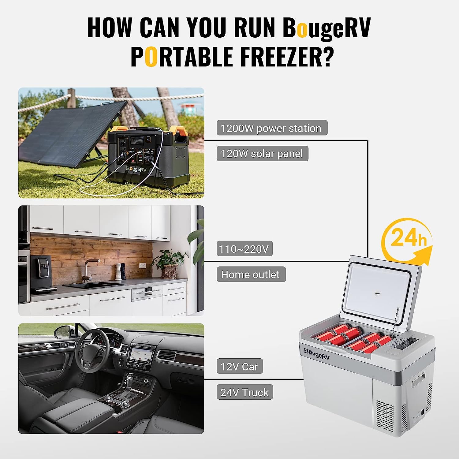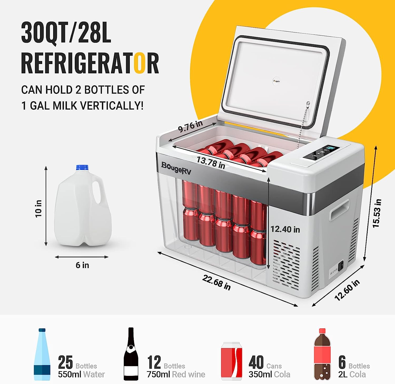 BougeRV 12 Volt Refrigerator 12V Car Fridge 30 Quart Portable Freezer Compressor Cooler Compressor Freezer,12/24V DC 110~240 Volt AC,-7℉~50℉ for Truck RV SUV
