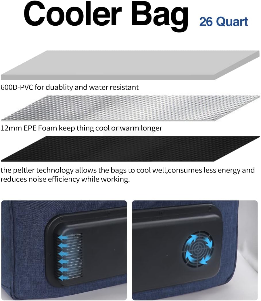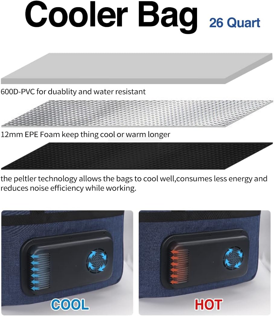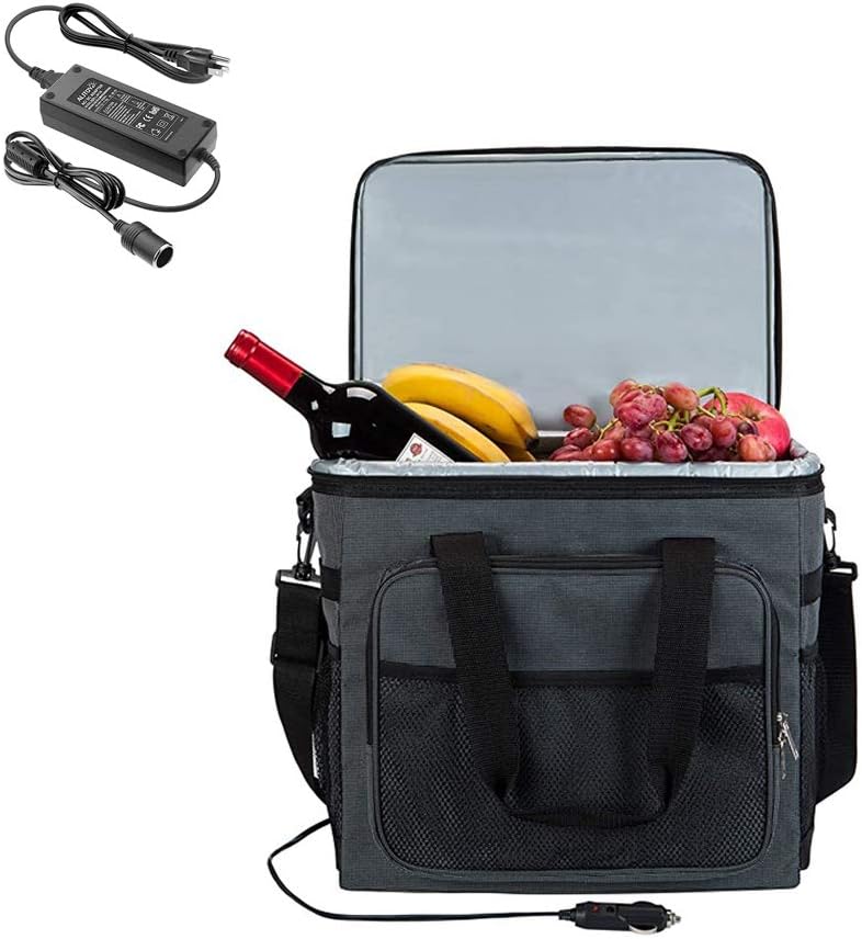 Car Cooler Bag 25L,12V DC Plug in Cooler for Vehicle - Collapsible Thermoelectric Cooler Keep Drink Cool/Fresh, Soft Cooler Bags with AC to DC Converter