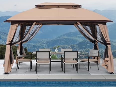 ABCCANOPY 10x13 Outdoor Patio Gazebo - Double Roof Backyard Gazebo with Mosquito Netting for Backyard, Garden or Lawn (Khaki)