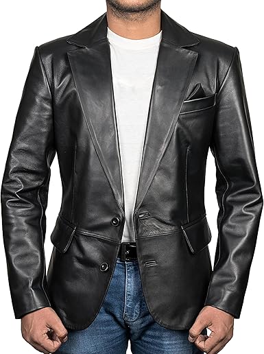 HIGOBO Genuine Lambskin Black Leather Blazer for Men Overcoat Casual Blazer Jacket for Men